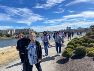 Départ pour notre dîner de groupe à 10 minutes à pied. Notre guide local Daniel, originaire de Québec qui habite Victoria depuis près de 40 ans, est venu nous rejoindre pour un tour de ville de Victoria. Premier arrêt au mont Tolmie duquel nous avons pu observer le grand Victoria de même que les baies qui l’entourent. Une vue magnifique sur les monts avoisinants. Continuation vers les Uplands, quartier résidentiel chic, comparable à Westmount au Québec, sur le bord de l’océan. L’air humide et salin emplit nos narines. On ne veut pas faire de jaloux là mais y’a pas de maringouins ici, pas de frappe à bord, on peut laisser les fenêtres ouvertes! Il n’y a même pas de moustiquaire aux fenêtres. Il y a cependant beaucoup de chevreuils, ils ne sont pas farouches, habitués à la présence de l’homme. C’en est même un problème paraît-il.