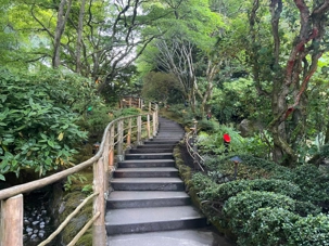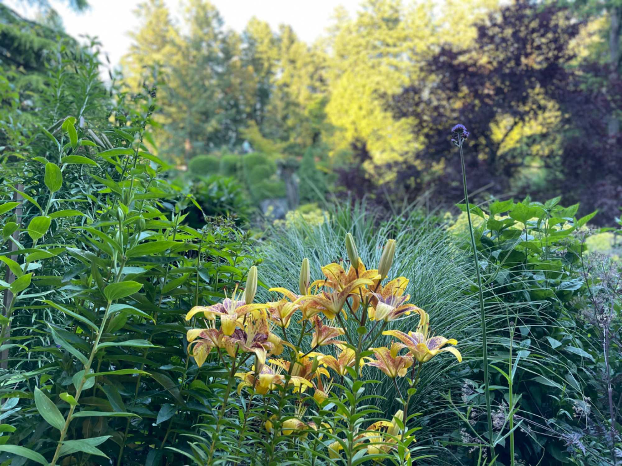 C’est d’une beauté extraordinaire, la variété de fleurs est étonnante, roses, fuchsias, héliotropes, hydrangeas, iris, zinnias, ricins, chrysanthèmes, etc. Les couleurs : vert, rose, blanc, bleu, turquoise nommez-les elles y étaient. Les odeurs nous titillent les narines! C’est tout simplement splendide.