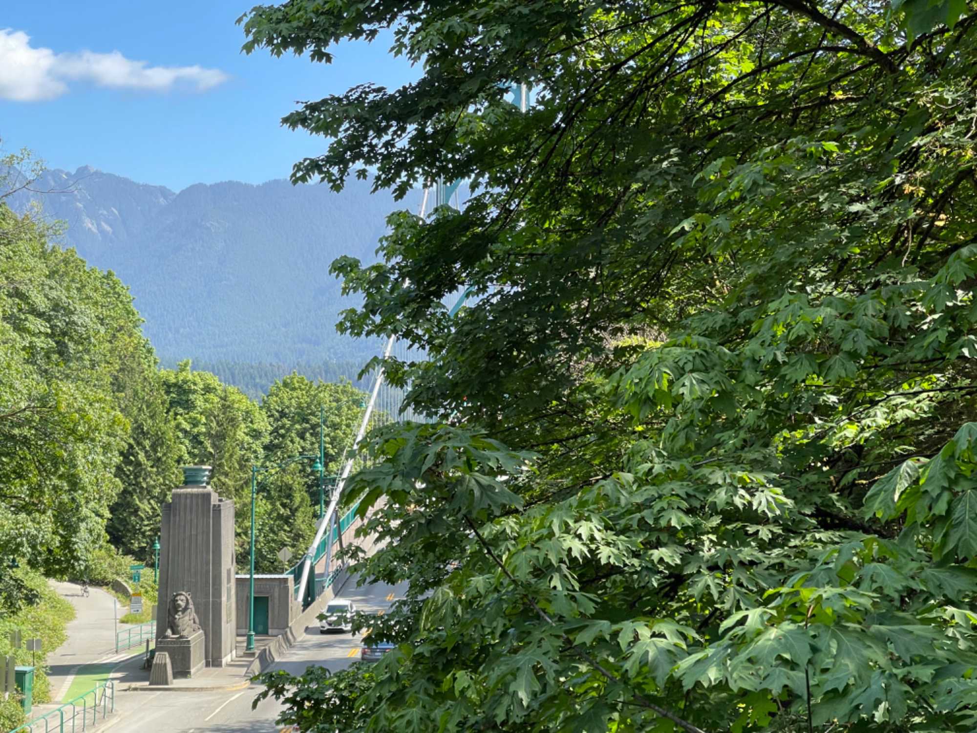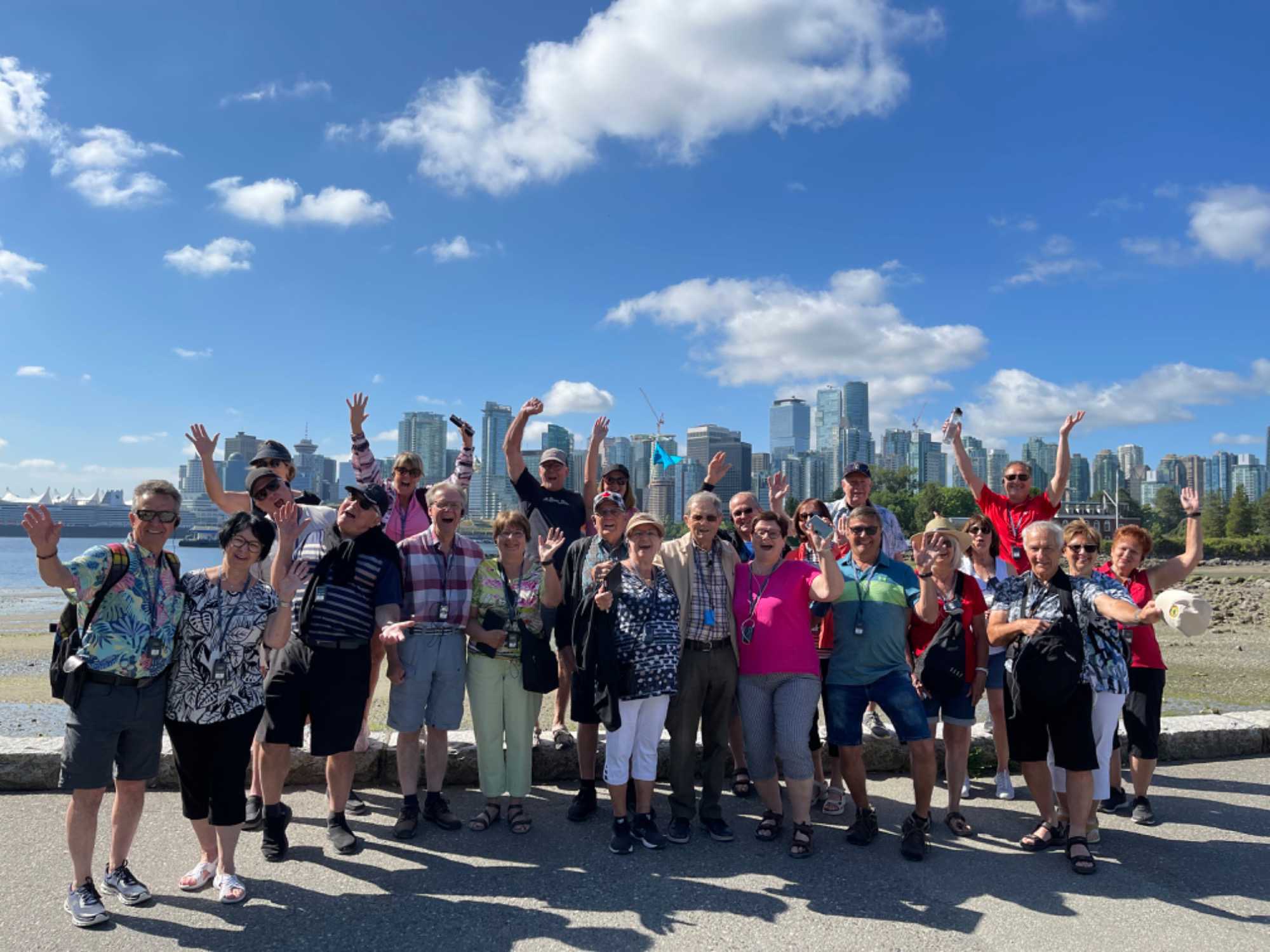 Notre premier arrêt est à Brockton Point, au parc des mâts totémiques où notre guide nous donne des explications des totems puis, nous visitons le parc Stanley, nommé ainsi en l’honneur de Lord Stanley en 1886, le même qui donna son nom à la coupe Stanley. Ce fameux parc est comparable à Central Park de New York mais celui-ci est entièrement naturel. Il y a des arbres plus que centenaires. C’est le plus grand parc de ville en Amérique du Nord avec ses 1000 âcres. Des arbres de plus de 700 ans! Des feuilles d’érable de 12 pouces de large. N’oublions pas que nous sommes toujours en plein cœur de la ville de Vancouver. La ville est très boisée il y a même des arbres sur les toits des édifices. Aussi, il est facile de s’orienter car la ville est développée en quadrilatère. Beaucoup de place pour les vélos et les piétons, une piste cyclable de 10 km entoure le parc Stanley nous pouvons nous y rendre à pied de notre hôtel, nous sommes vraiment bien situés et les voyageurs en sont enchantés.