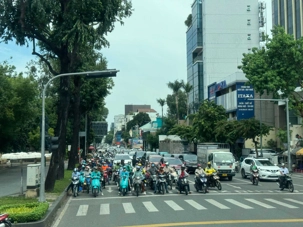 Ce matin, nous partons tôt pour nous rendre à l’aéroport de Da Nang, à 30 kilomètres de Hoï An, pour aller à Hô Chi Minh Ville, encore appelée Saigon. La route ainsi que l’enregistrement se passent sans difficulté. Après une heure de vol nous atterrissons à Hô Chi Minh ville. Madame Ngân, notre guide, est de retour dans sa ville. Elle est contente de nous la faire découvrir avec ses 14 millions d’habitants et tout autant de scooters !
