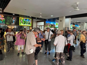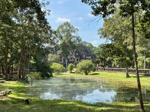 Ce matin, le temps est bon et le ciel est bleu ! Nous sommes très bien installés dans notre luxueux Hôtel. Pour déjeuner, on nous offre un très beau buffet avec une grande variété de mets, de viande, de pain, de fruits et de breuvages. Il y en a pour tous les goûts. Tout le monde est à l’heure comme d’habitude et nous partons faire la visite des majestueux temples d’Angkor. Tout d’abord, nous allons chercher notre passe avec photo pour les postes de contrôle des temples à visiter pendant nos deux jours à Siem Reap.
