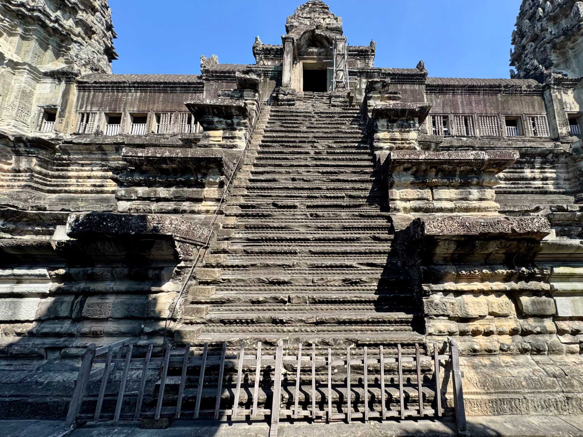 Angkor Wat, l’épicentre du grand empire khmer, est toujours le symbole du Cambodge et il est également représenté au centre du drapeau national. Classé au patrimoine mondial de l’UNESCO en 1992, son histoire remonte à la fin du XIIe siècle, lorsque sa construction a commencé sous le règne du roi Suryavarman II de l’Empire khmer. La construction semble s’être arrêtée à la mort de Suryavarman en 1150, laissant certaines parties du complexe inachevées. Initialement dédié à Vishnu comme temple hindou, son utilisation s’est progressivement transformée en un lieu de culte bouddhiste au XIVème siècle. Légèrement négligé vers la fin du XVIe siècle, le temple n’a jamais été dépassé par la jungle, en grande partie grâce à la barrière naturelle créée par les douves qui l’entourent. Le peuple thaïlandais a été fasciné par le temple lors de leur invasion en 1431 et les Français ont également été séduits par sa splendeur au XIXe siècle lorsqu’ils l’ont introduit dans le monde occidental. Le livre d’Henri Mouhot publié en 1860 « Voyages au Siam, au Cambodge, au Laos et à l’Annam” » est largement crédité d’avoir causé le premier grand boom touristique à Angkor Wat.