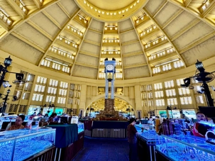 Puis, nous nous rendons au marché central, un véritable trésor pour les touristes où nous pouvons y ressentir la vie active et trépidante des résidants. Ce marché, situé sous un grand dôme stylisé en béton, regroupe des centaines d’échoppes et d’étals alignés le long des allées étroites. C’est une véritable caverne d’Ali Baba avec une organisation thématique. Une grande zone rassemble les marchands de tissus, de vêtements et d’accessoires de mode; idéal pour renouveler une garde-robe à moindre coût ! Nous y trouvons des tuniques, des chemises et des pantalons, ainsi que des articles de marque renommée fabriquées localement. Nous en profitons pour trouver de jolis souvenirs dans les échoppes d’art et d’artisanat. Parfois le propriétaire dort sur le plancher, on ne veut pas le réveiller ! Nous y découvrons des sculptures en bois, des miniatures de Bouddhas, de la soie, des cloches, des instruments de musique traditionnels, de la petite vaisselle, des objets et des bijoux en argent ou bien en jade ainsi que des tableaux. L’embarras du choix s’offre à nous. Découvrir les marchés de Phnom Penh c’est aussi un festin de saveurs, d’odeurs, de couleurs et de trésors! Lorsque nous nous approchons du grand espace alimentaire, nous sommes accueillis par une symphonie d’odeurs, parfois agréables, parfois moins plaisantes. Les étals regorgent de poissons frais ou séchés, de viandes variées telles que les cuisses de grenouilles, le poulet, le porc ou le bœuf, accompagnés d’une explosion colorée de légumes, de racines et de fruits tropicaux.