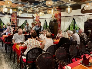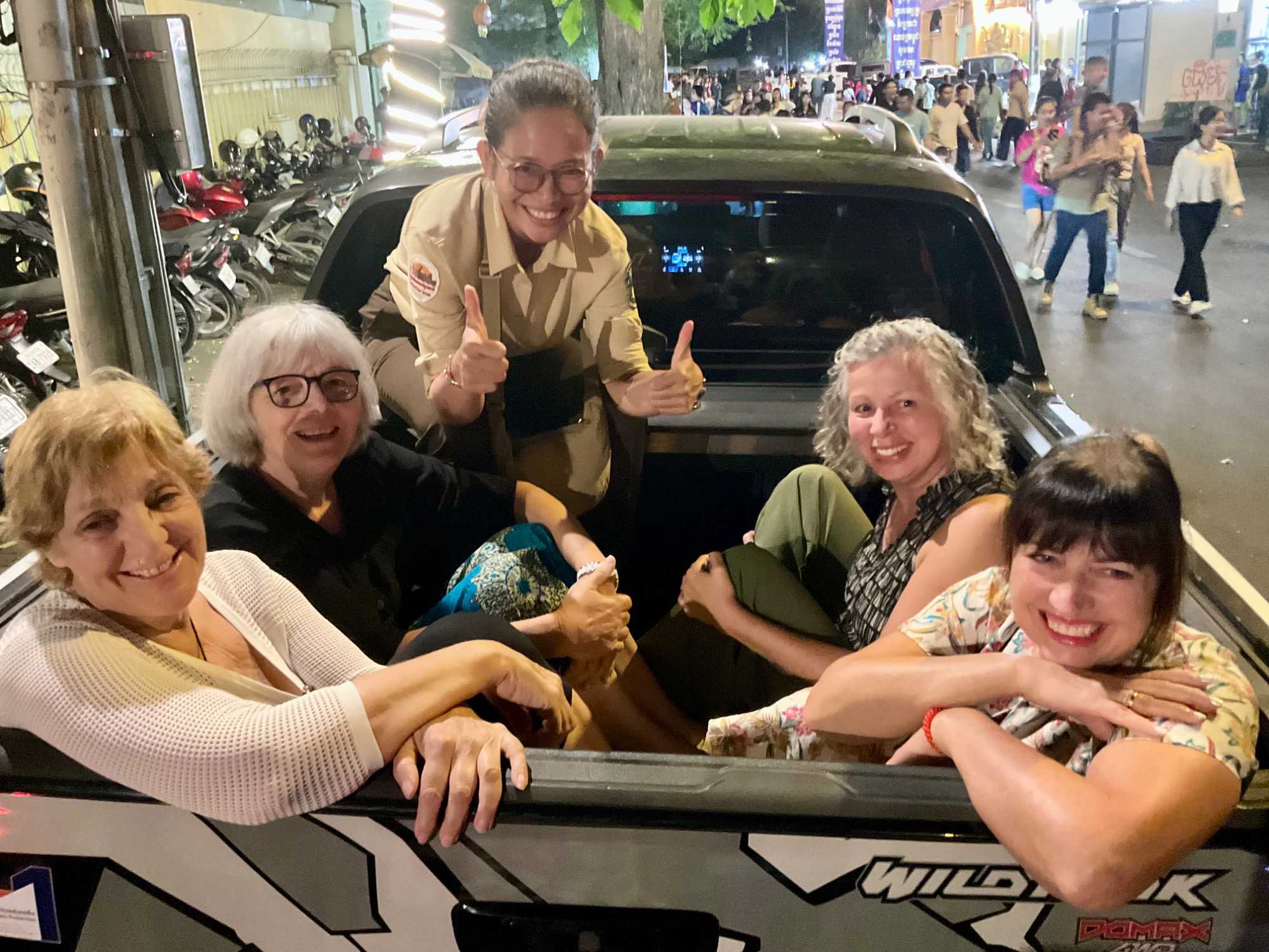 Nous retournons à l’hôtel pour nous rafraîchir et nous préparer pour notre dernière sortie au restaurant. On nous offre de nous déplacer à bord d’une fourgonnette et d’un pick-up dans lequel 4 voyageuses se portent volontaires pour monter à l’arrière. L’hôtel nous offre ces moyens de transport puisque les rues sont bondées de milliers de personnes pour la Fête de l’Eau. Nous sommes contents de pouvoir assister à cet événement festif.
