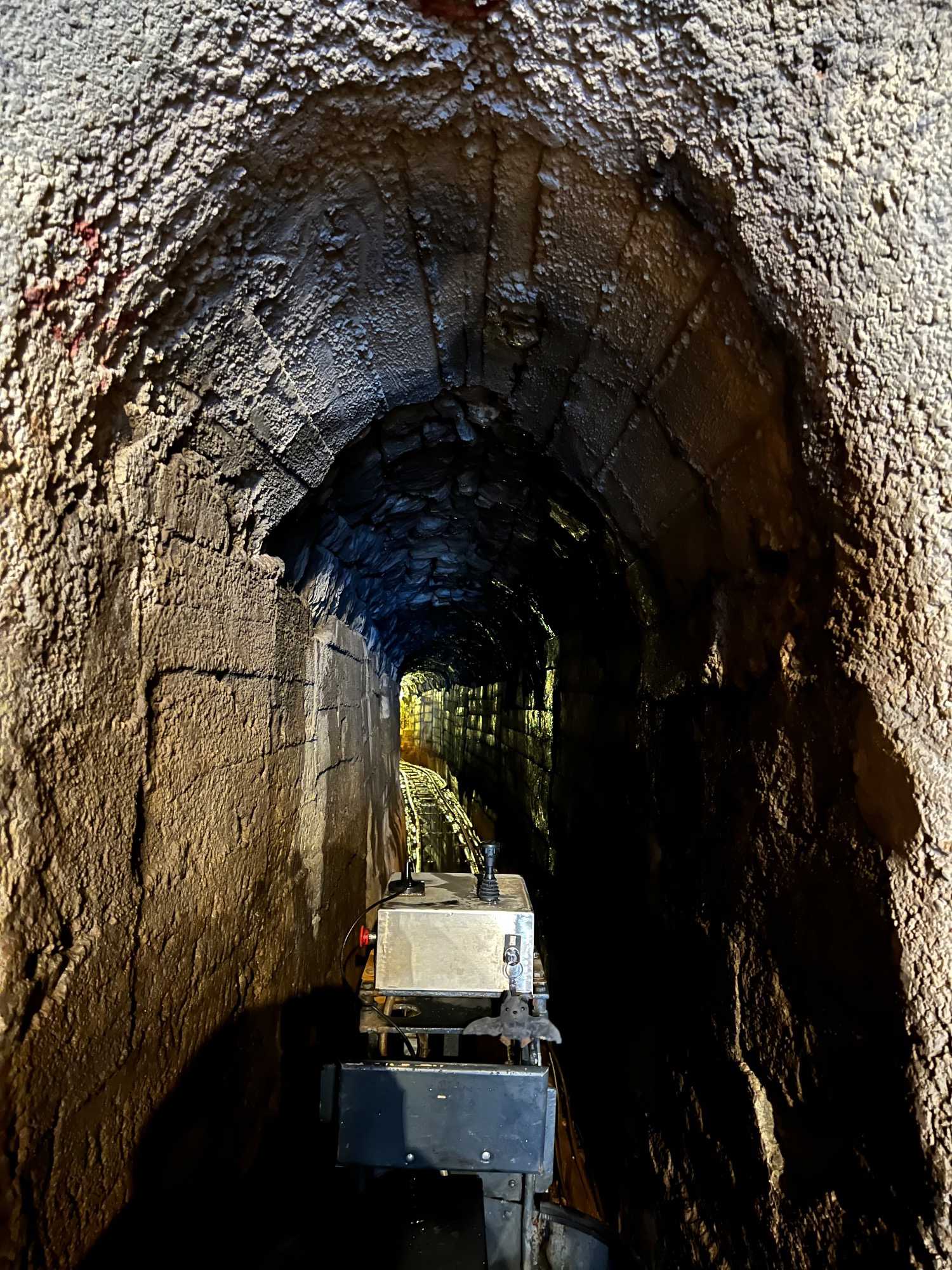 La température constante de la mine est de 12 degrés. Le train minier nous emporte a une profondeur de 300 mètres du niveau du sol (mais de 2000 m au-dessous du sommet de la montagne). Il file à une vitesse de 16 km/heure pour environ 1 km. On peut tous embarquer dans le même wagon. La visite se fait en français par le guide de la mine qui, quelque fois, se fait aider par Barbara.