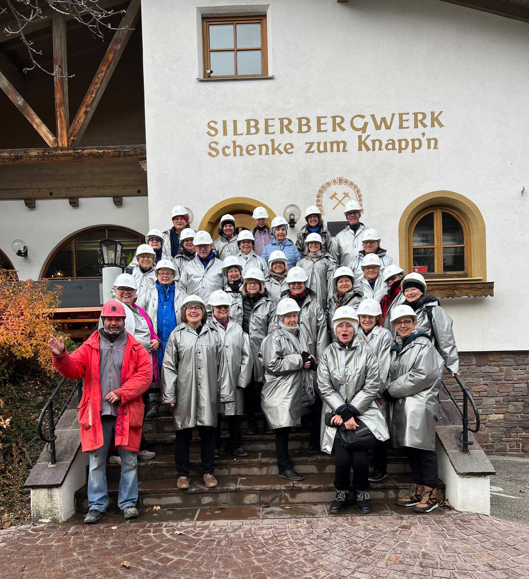 Bonjour! Ce matin, nous sommes prêts pour un départ vers la mine d’argent de Schwaz. Nous sommes à moins de 5 km, c’est juste de l’autre côté de l’Inn (la rivière). Nous y sommes donc en quelques minutes à peine. Nous enfilons un manteau et un chapeau protecteurs, et nous voilà embarqué dans un petit train qui descend dans les profondeurs de la mine. On dit de cette mine qu’elle est « La mère de toutes les mines », car c’est la plus grande mine d’argent de la fin du Moyen-Âge. Il y a 500 ans, jusqu’à 10 000 mineurs ont cherché et trouvé ici de l’argent et du cuivre et ont fait de la ville de Schwaz la plus grande métropole de mineurs au monde ! Au Moyen-Âge, Schwaz était le centre montagnard de l’Europe. Près de 85 % de l’argent produit dans le monde entier provenait de Schwaz et a fait de la ville, pendant sa période de floraison vers 1500, la plus grande métropole minière du monde et du Tyrol, un des plus riches pays d’Europe. Les grandes familles de marchands ont été tellement influentes qu’elles dictaient la politique de l’Europe et les découvertes du Nouveau monde grâce à l’argent de Schwaz. Lors de la visite dans la mine, on nous donne un aperçu fascinant du rôle important qu’a joué Schwaz au Moyen-Âge.