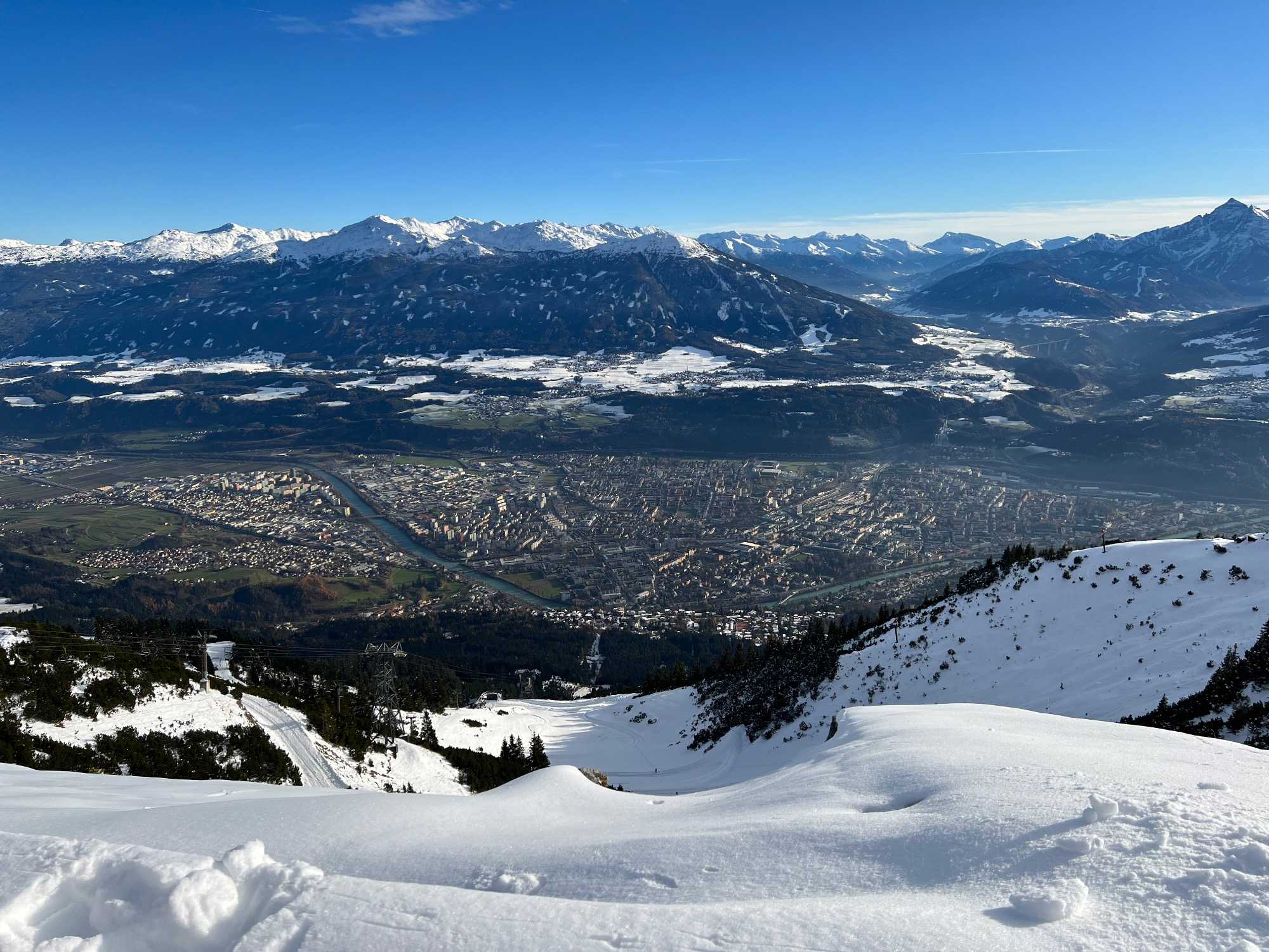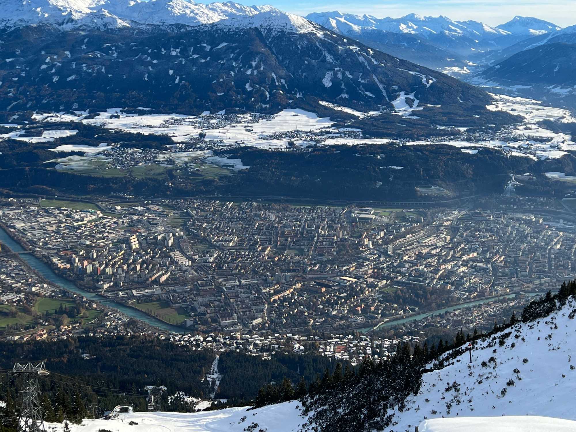 Puis, on se rend au funiculaire qui nous amène au Nordkette d’Innsbruck, qui fait partie du plus grand parc naturel d’Autriche. Arrivés à la station Hungerbug du funiculaire située à 300 mètres d’altitude, nous profitons d’une vue imprenable sur la ville. Avec la télécabine, nous atteignons 1905 mètres d’altitude en seulement 8 minutes. Le panorama sur la vallée de l’Inn est époustouflant!