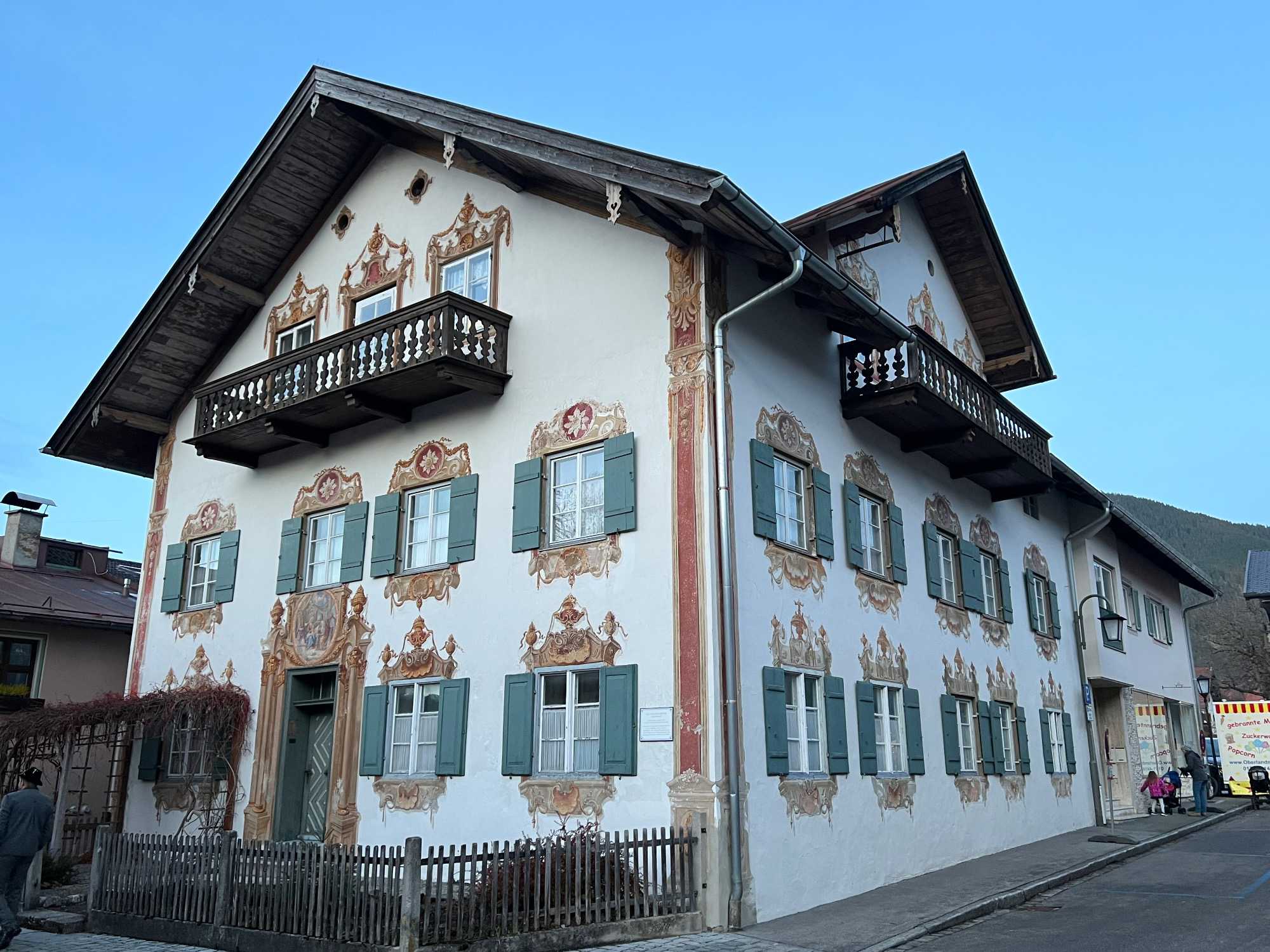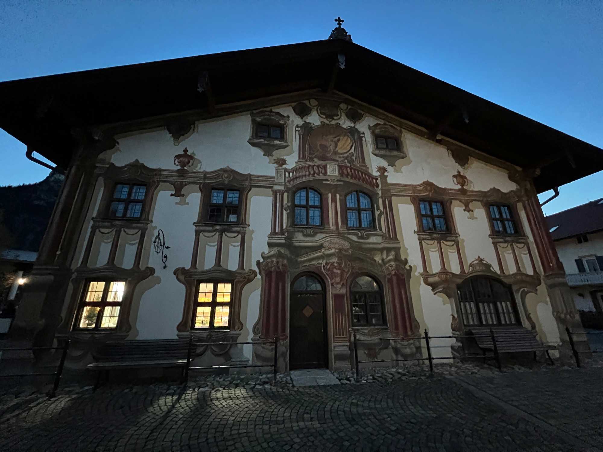 Notre journée ne s’arrête pas ici! Nous avons la chance d’avoir une visite privée du village de Oberammergau avec notre guide locale Maria. Ce village est connu dans le monde entier pour son « Jeu de la Passion », organisé tous les dix ans. Située dans les Alpes d'Ammergau, c'est aussi une destination pittoresque et magnifique pour les amoureux du plein air. Bien que les jeux de la passion soient joués dans tout le monde chrétien, celui d'Oberammergau est unique, en ce sens qu'il s'agit d'une action de grâce à Dieu pour avoir épargné les habitants du village des pires ravages de la peste au XVIIe siècle. Joué pour la première fois en 1634, il se tient maintenant dans les années qui se terminent par un zéro. Par conséquent, la prochaine représentation est prévue pour 2030. Tous les artistes et techniciens impliqués sont locaux; environ 2 000 personnes, presque la moitié du village, y participent. Chaque représentation dure six heures, avec un entracte.