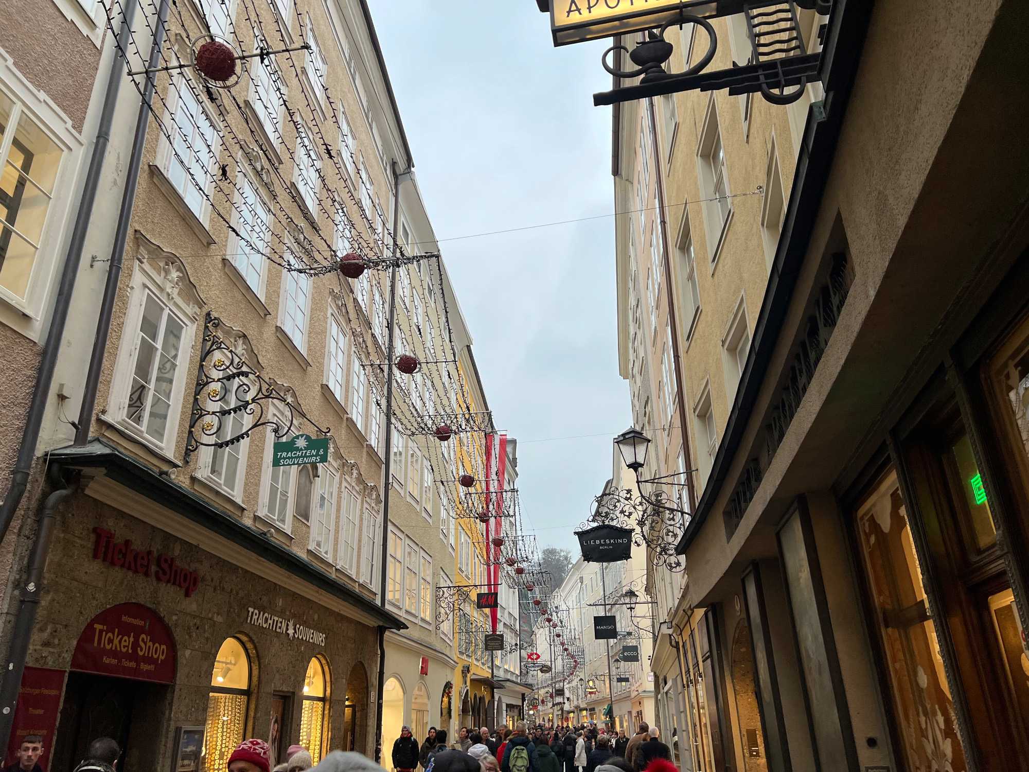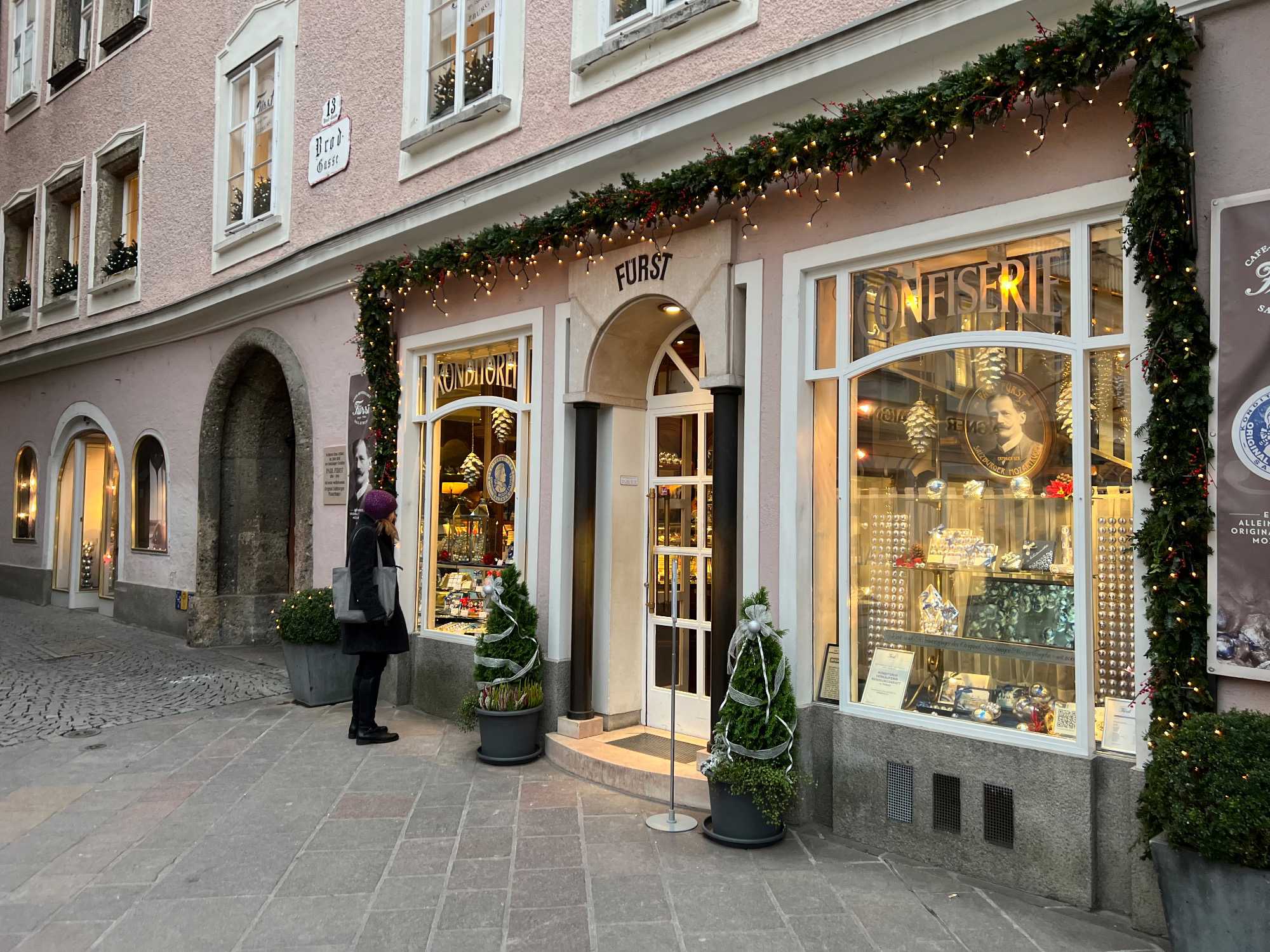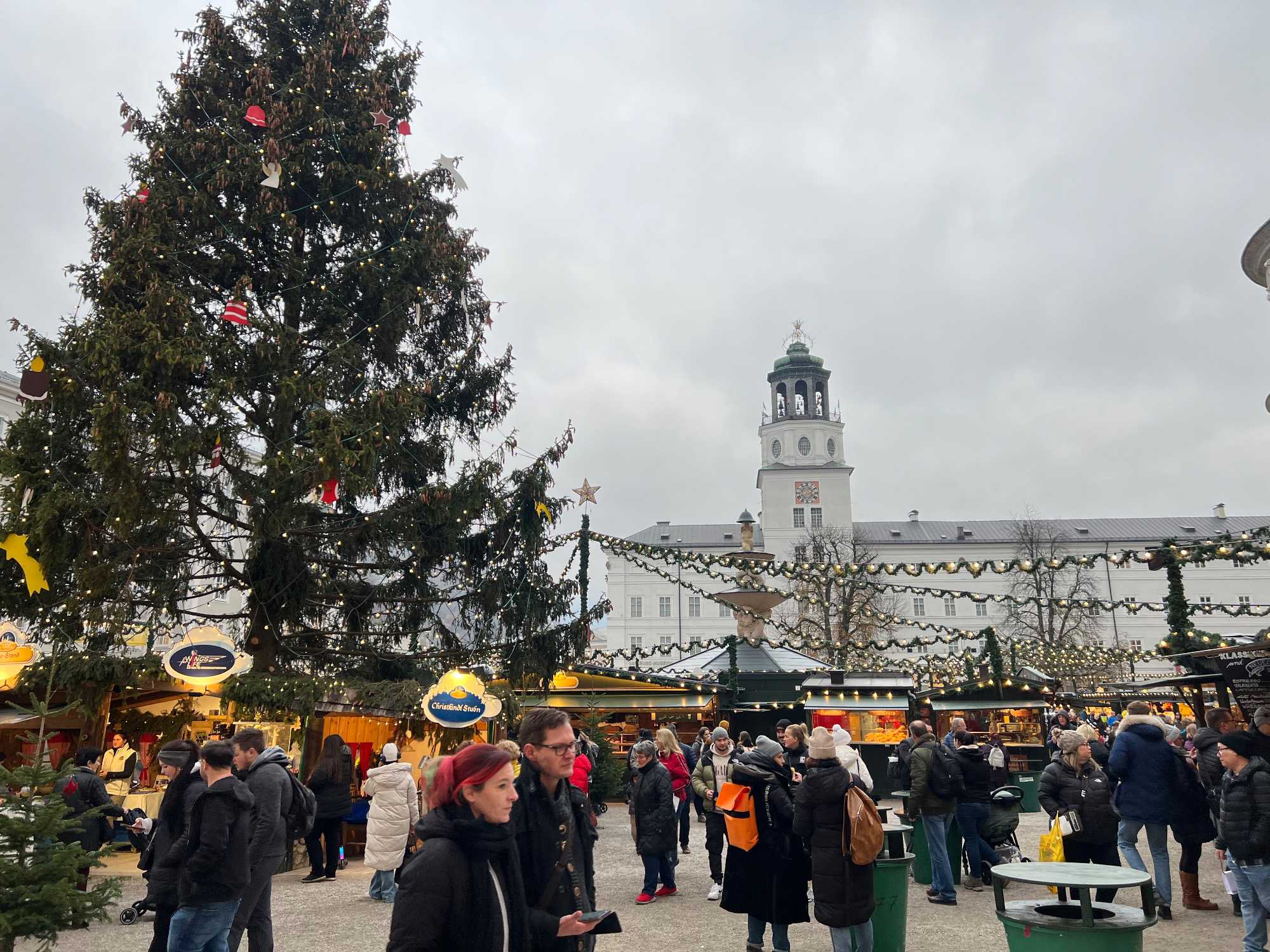 Dès notre arrivée à la fabuleuse ville de Salzbourg, on se dirige au restaurant où on nous attend pour le lunch. C’est à cet endroit que vient nous rejoindre notre guide de Salzbourg, Eirard, un homme très gentil et attentionné. Tout l’après-midi, il nous montre les plus beaux endroits de cette ville baroque. Les ruelles étroites et les larges places de la vieille ville font partie du site du patrimoine mondial de l’UNESCO. Tout au long de la visite, des vitrines alléchantes nous invitent à l’achat de la Mozartkugel, cette boule de Mozart est un bonbon de chocolat à base de pistache, pâte d’amande et praliné… Et bien, Louise Drouin avait prévu cela dans notre programme et nous avons droit à une dégustation. Verdict: délicieux!!! Le plus difficile dans ce 2 heures de promenade a été de ne pas s’arrêter dans le marché de Noël qui était très invitant… nous aurons la chance d’y retourner demain.