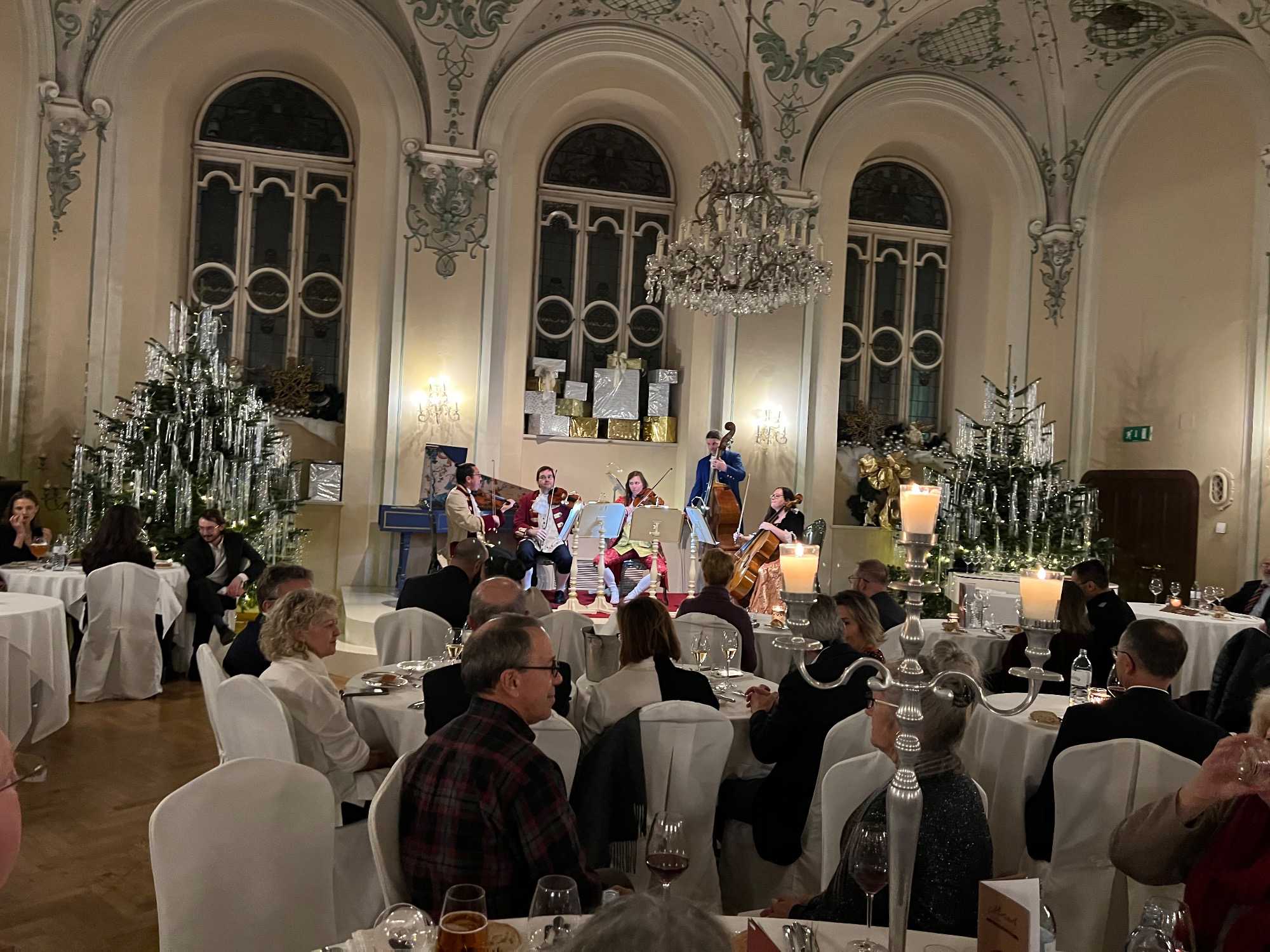 Nous sommes donc conviés au « MOZART DINNER CONCERT », l’expérience de concert classique de Salzbourg depuis 25 ans. Dans la salle baroque baignée de bougies, le chef aux 2 toques Christopher Grassl nous gâte avec son menu Mozart historique. Entre les services, des chanteurs d'opéra et des instrumentistes de première classe interprètent les merveilleuses compositions de Wolfgang Amadeus Mozart. Ce spectacle a lieu au restaurant Stiftskeller, dans les caveaux St.Peter. Ce restaurant a été mentionné pour la première fois en 803 (et oui l’année 803 !!!), obtenant ainsi le titre documenté de plus ancien restaurant d'Europe. Il fait partie du célèbre monastère bénédictin et est situé dans la partie la plus ancienne de Salzbourg. La salle baroque avec ses stucs et ses fresques est une magnifique pièce maîtresse. Le lieu est enchanteur. C’est l'une des dernières salles de concert de Salzbourg où l'éclairage à la bougie est encore autorisé. Les onze salles à manger meublées de façon unique et distinctes sont situées dans le complexe de l'abbaye Saint-Pierre, chacune avec sa propre histoire fascinante. Pour la petite histoire, c’est dans l’église du monastère Saint-Pierre qu’en 1783 Mozart joua pour la première fois sa messe en ut mineur.