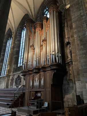 Notre dîner sera MÉMORABLE dans la tête de tous et chacun. Tout d’abord, l’endroit est fabuleux! Nous sommes dans la voûte du magnifique hôtel de ville. Le décor est vraiment très beau. Le dîner est très bon avec une salade du jardin, une escalope viennoise et un délicieux gâteau en dessert. Mais le clou du dîner fut nos voisins de table… ils se sont mis à tous chanter ensemble, dans une belle harmonie, c’était enchanteur. Nous les avons applaudi chaleureusement et ils nous ont chanté une autre chanson. Une autre ovation de notre part et ils nous ont chanté Hallelujah de Leonard Cohen (sans savoir que nous étions canadiens!). L’émotion était à son maximum! Des larmes de bonheur coulaient, c’était vraiment émouvant. Un très beau moment que nous nous souviendrons longtemps. Après leur prestation, j’ai demandé au chef du groupe qui ils étaient: une chorale d’Allemagne venue pour chanter dans un festival international dimanche à l’hôtel de ville. Quand je lui ai dit que nous venions du Canada et de Montréal, la ville de Leonard Cohen, le chef l’a mentionné à son groupe et ils étaient tous très heureux aussi de nous avoir chanter cette chanson.