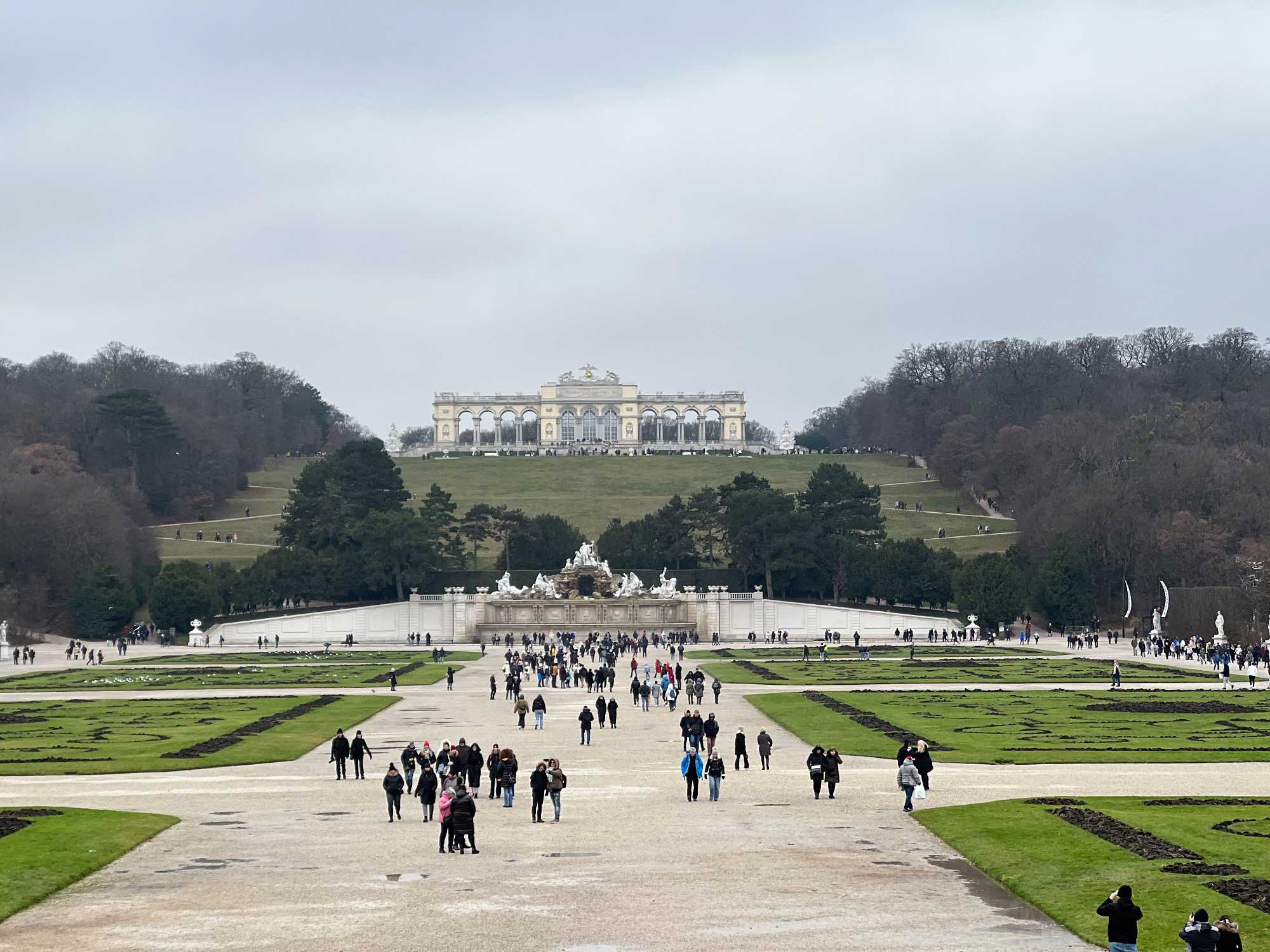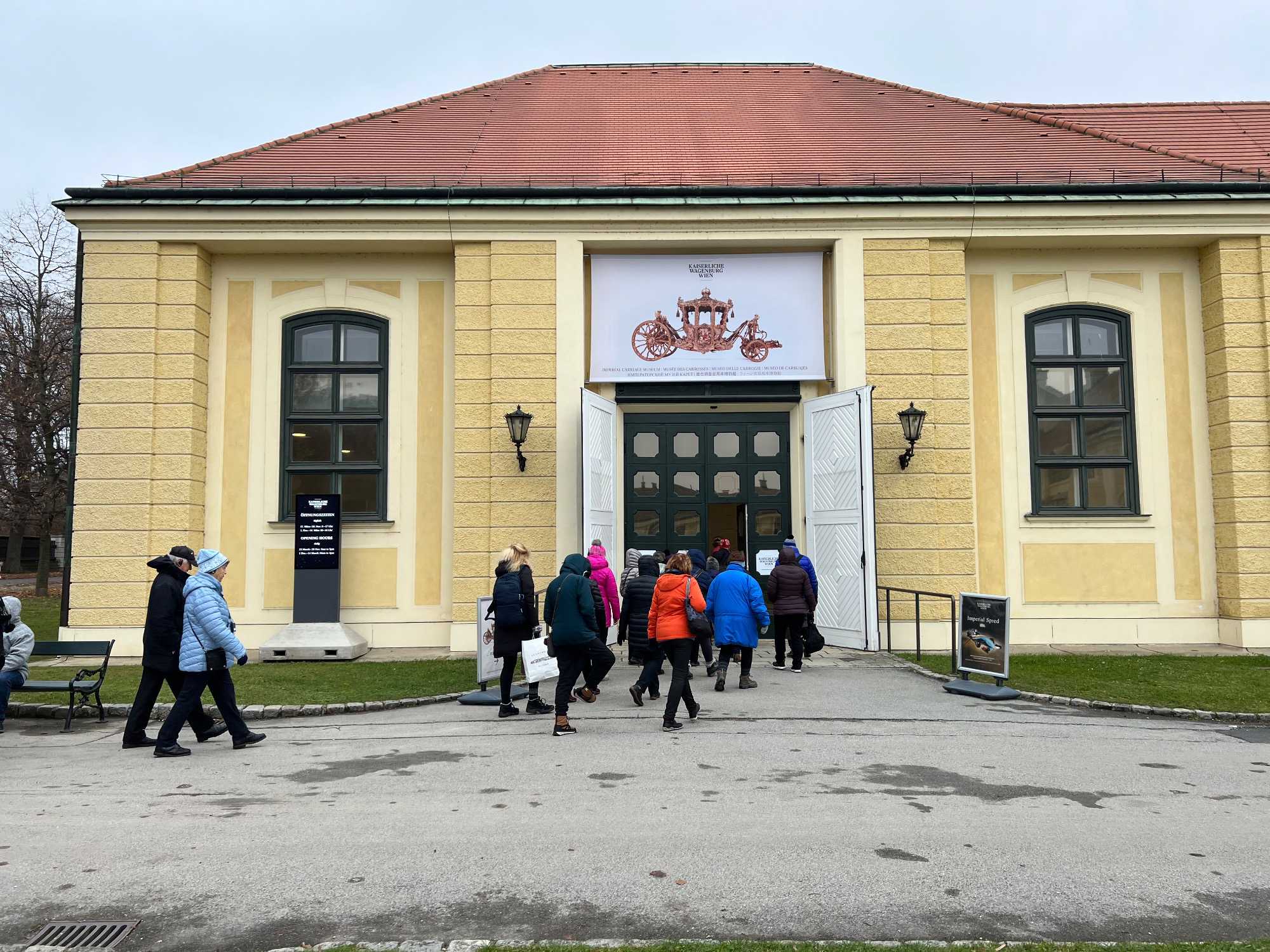Bonjour! Nous avons encore une magnifique journée. Le bonheur nous suit… Ce matin, Philipp nous rejoint à l’hôtel et nous poursuivons notre visite guidée de Vienne. Nous allons à Schönbrunn visiter le célèbre Palais, mieux connu sous le nom de Palais de Sissi! Le château de Schönbrunn est classé au patrimoine mondial de l’UNESCO depuis 1996. Notre guide nous conduit à travers les plus belles salles d’apparat du château. Nous visitons les appartements de l’impératrice Marie-Thérèse, parmi lesquels se trouve la chambre où Napoléon 1er a logé, et où son fils, l’Aiglon, est mort. Dommage, nous ne pouvons prendre des photos à l’intérieur du château…Nous sommes très chanceux car Philipp nous explique que c’est une des rares fois où il a vu si peu de monde à l’intérieur, où il ne se sentait pas obligé d’accélérer pour donner ses explications. Nous avons pu en profiter au maximum! Nous terminons cette visite par le musée des carrosses, situé dans l’ancien manège d’hiver, qui abrite une collection de plus de 60 carrosses d’apparat, d’équipages, de traîneaux, de chaises à porteurs, de corbillards de la cour impériale des années 1690 à 1918. Quelle somptuosité! Nos yeux sont émerveillés.