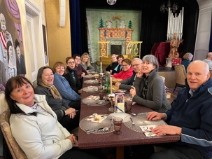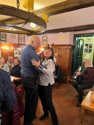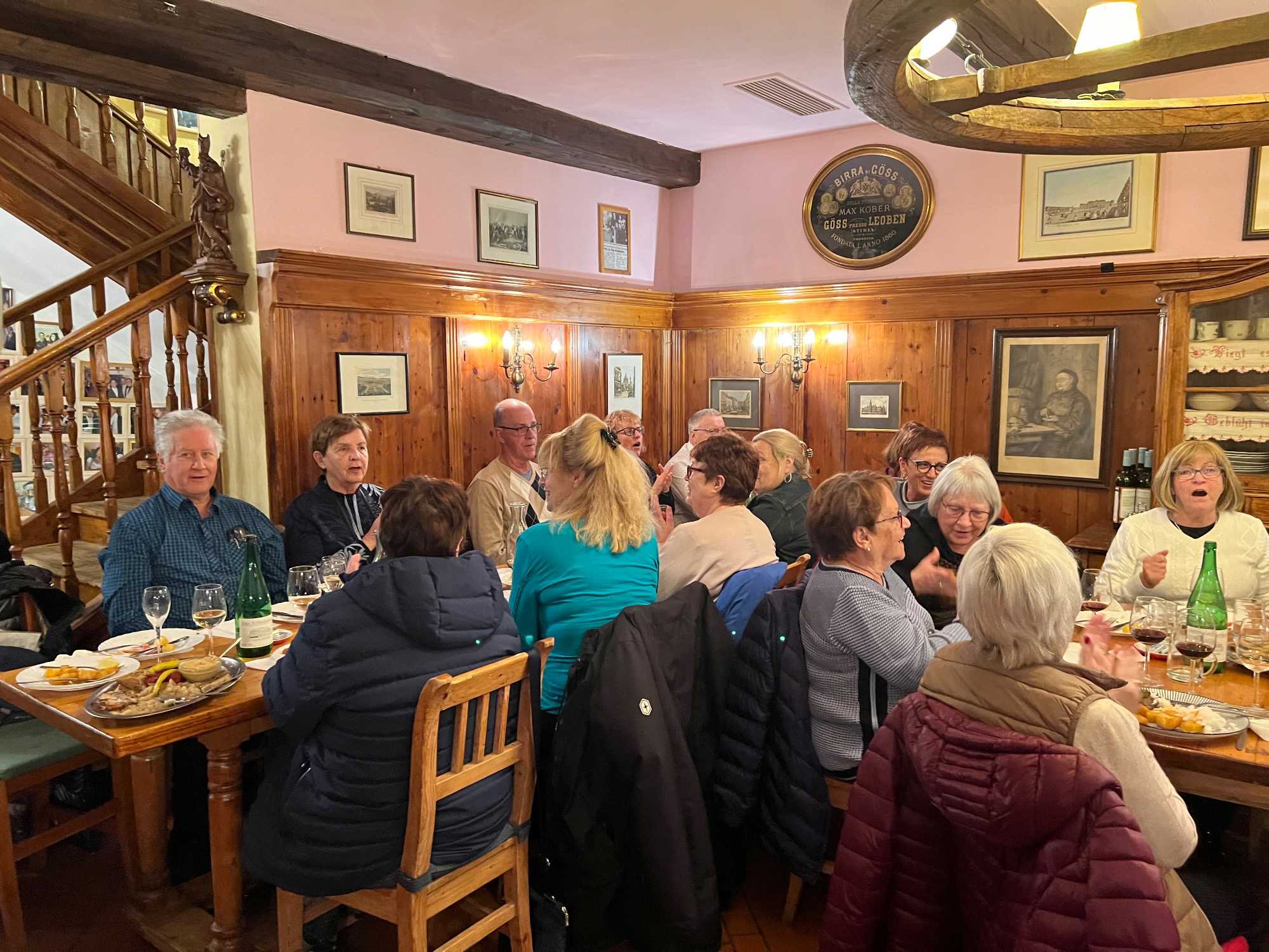 Ce soir, notre souper se prend dans un endroit typique viennois: un Heuriger! Le vrai « heuriger » viennois est un lieu de rencontre à la convivialité légendaire où on déguste les vins de Vienne et les accompagnements culinaires qui vont avec. La vraie taverne viennoise de heuriger, qui sert exclusivement le vin de Vienne, se reconnaît aux rameaux de pin suspendus à l'entrée et au panneau « Ausg’steckt » qui indiquent tous deux que la taverne est ouverte. Nous avons une soirée encore extraordinaire! On s’amuse, on chante, on danse, le vin est bon et la musique aussi! Quelle soirée! Le retour en bus a été des plus enjoué, nous avons tellement ri! Heureusement que notre chauffeur Michael aime bien nous voir aussi joyeux et que ça ne dérange pas sa conduite! Arrivés à l’hôtel, certains ont voulu continuer le party. Un très bon groupe je vous dis!