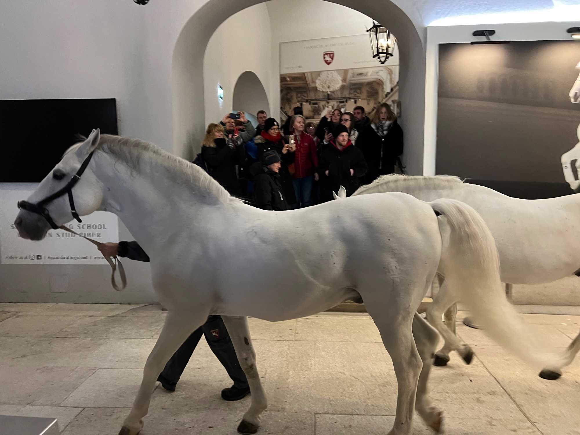 Nous poursuivons nos belles découvertes par quelque chose de très différent… l'école d'équitation espagnole et ses célèbres lipizzans présentent un spectacle équestre dans le décor baroque du palais impérial. Cette école est la seule institution au monde qui conserve et cultive, sans le transformer, l'art équestre classique de la Haute-École, de la Renaissance à nos jours. Des années d'entraînement finissent par souder cheval et cavalier, formant une unité indissociable. C’est un moment inoubliable qui s'offre au spectateur tant les mouvements précis des lipizzans sont en harmonie avec la musique. Les représentations de gala permettent au public d'assister à des spectacles équestres dans le plus beau manège du monde, un cadre grandiose conçu en 1729–1735 par l'architecte baroque J.E. Fischer von Erlach. A l'époque, c'était ici que les jeunes nobles apprenaient à monter à cheval. Depuis décembre 2015, les arts équestres de l'école d'équitation espagnole sont également patrimoine culturel immatériel de l'humanité UNESCO. WOW! Nous avons assisté à tout un spectacle! Notre guide nous informe que c’est la seule fois cette année qu’un de ses groupes assiste à ce spectacle. Voyage Louise Drouin s’assure d’offrir des prestations exceptionnelles à ses voyageurs! Merci!