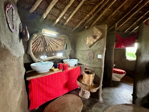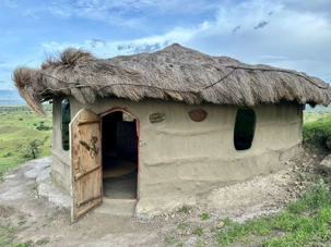 Après notre enregistrement, et un bon café servi avec un petit gâteau, nous sommes accompagnées vers nos maisons privées respectives, construites comme une hutte traditionnelle maasaï. Nos maisonnettes sont fabriquées en un mélange de bouses de vache et de boue séchée construite par les femmes pour leurs hommes. Les Maasaïs sont semi-nomades et leur richesse se limite à leur troupeau de vaches, de moutons et de chèvres. Plus on possède de vaches, plus on est riche et plus on peut avoir de femmes, car, bien oui, la polygamie est existante chez ce peuple et les vaches c'est le signe de la prospérité. Je ne serais pas étonnée qu’un maasaï tente d’acheter une femme de notre groupe ! Oui oui, l’an dernier nous avons eu à nous opposer à d’une telle demande ! Mais soyez rassuré chers parents et amis lecteurs, nous n’avons laissé personne derrière et nous ne commencerons pas cette année. Nous avons eu un peu de temps pour apprécier notre charmante demeure. Tout y est bien pensé et quels soucis du détail. C’est totalement amusant et fonctionnel, on se croit vraiment dans une maison des « Pierre à Feu » mais tellement jolie.