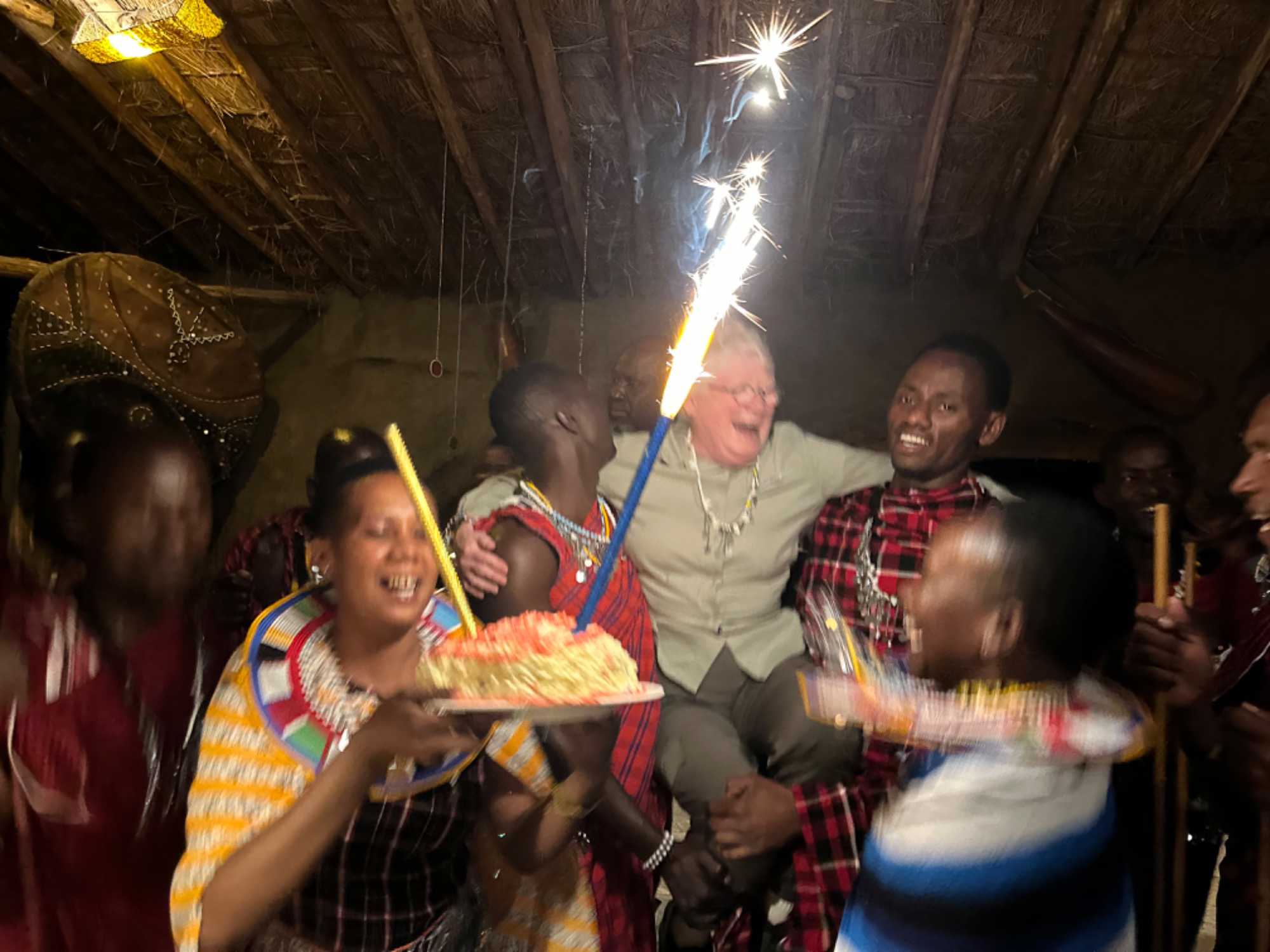 Le souper fût agréable encore une fois. Mais c’est au dessert que nous nous sommes bien amusés avec la célébration de l’anniversaire de Ginette. Quelle belle occasion j’avais de faire participer mes voyageurs à la fête. Les maasaï étaient en feu et mon groupe aussi. Nous avons dansé et chanté pour les accompagner et pour fêter notre jubilaire qui n’en revenait pas de toute cette fête. Après avoir partagé un excellent gâteux d’anniversaire et bien que la soirée soit belle, tour à tour nous partons finaliser nos bagages, dormir et rêver à la journée de demain pour notre premier safari en Tanzanie.