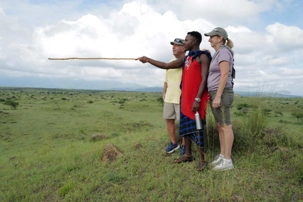 Le déjeuner se déroule dans le plaisir, la journée s’annonce belle. Tout le monde est prêt à l’heure pour notre promenade dans la nature. Nous partons avec notre guide maasaï dans les environs du lodge. Il nous raconte sur tout ce qui nous entoure de même que sur le mode de vie de ce peuple d’éleveurs et de guerriers semi-nomades. A présent, les Maasaï ont été de plus en plus forcés de se sédentariser dans des villages et beaucoup d’entre eux sont contraints de chercher un travail salarié. Nous avons beaucoup de questions et notre guide y répond avec plaisir.