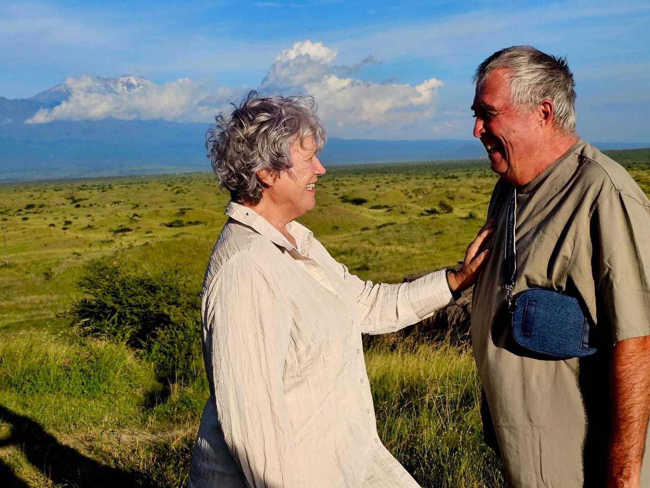 C’est un réveil différent ce matin, nous ressentons que c’est déjà l’effervescence autour de nous avec tous ces bruits différents de la maison. L’espace d’un instant on se demande où l’on est. On nous apporte notre café à la chambre avec un muffin et on profite de la vue superbe du lever du soleil sur le Kilimandjaro. Wow ! On ne veut pas manquer ça ! C’est magnifique !