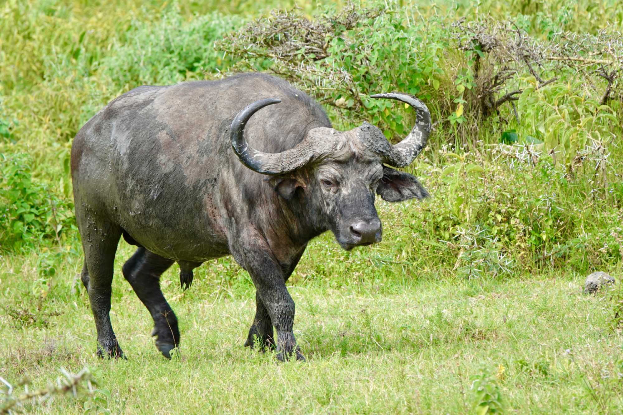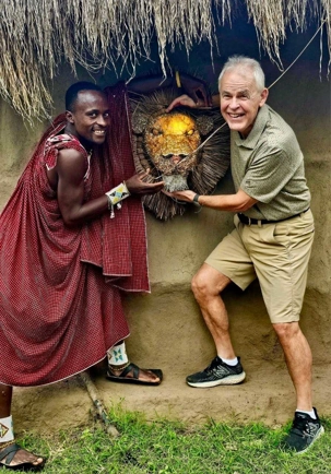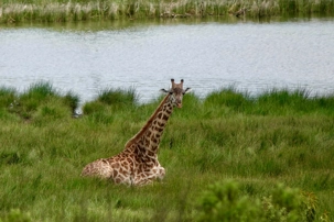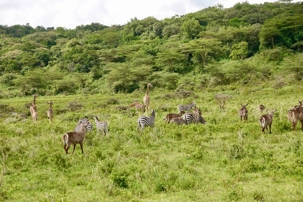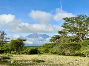 Nous quittons notre lodge, mais personne n’est triste puisque d’autres belles aventures nous attendent, nous n’en sommes qu’au début de ce voyage. Aucun retard à signaler, j’ai vraiment des voyageurs exemplaires qui m’accompagnent. Ils sont bien au fait que le moindre retard a un impact direct sur le déroulement de la journée. Tous veulent en voir le plus possible et ne rien manquer. De plus, il fait beau et chaud, une autre journée magnifique s’annonce et tous sont excités de partir en safari. Après le petit-déjeuner nous nous installons à nouveau dans nos jeeps et prenons la route jusqu'au parc national d'Arusha. Le parc national le plus proche de la ville d'Arusha, la capitale des safaris du nord de la Tanzanie. Le parc national d'Arusha est un joyau aux multiples facettes, souvent négligé par les amateurs de safaris, alors qu'il offre la possibilité d'explorer une diversité d'habitats fascinants en quelques heures. Le parc national d'Arusha est situé au pied du mont Meru. Ce parc, d’une beauté à couper le souffle, comprend les lacs alcalins Momella, les cratères de Ngurdoto ainsi que des chutes impressionnantes. Malgré sa taille modeste, c’est l’un des plus beaux parcs, offrant une vue spectaculaire sur les monts Meru et Kilimandjaro. D’une superficie d'environ 137 kilomètres carrés, le parc national d'Arusha abrite plus de 400 espèces d'oiseaux résidents et migrants, ainsi qu’une faune incroyablement variée: singes, colobes noirs et blancs, singes bleus, babouins, mais également des antilopes, girafes, éléphants, zèbres, hyènes et léopards. On dit du parc national d'Arusha qu’il possède la plus grande concentration de girafes au monde.