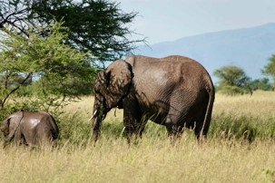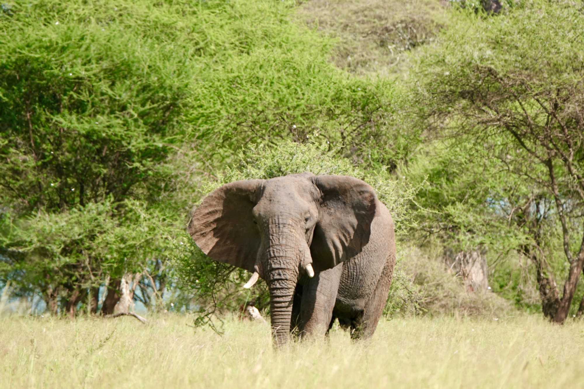 Ce parc est reconnu pour sa population d’éléphant et nous nous attendions à en voir sur notre route. Ce fût le cas car notre premier éléphant était assez loin mais comme c’était un énorme mâle nous ne pouvions pas le manquer. Par la suite nous avons croisé une petite famille avec de jeunes bébés éléphants, comme ils sont mignons ces bébés. Les routes du parc sont assez cahoteuses car cette année en Tanzanie il y a eu beaucoup de pluie, plus que la normale et cela a changé le parc. Les routes sont souvent difficiles pour nos jeeps car des immenses fossés d’eau sont sur notre passage. Un petit malheur arrive souvent et oui un de nos chauffeurs a heurté une roche pointue et a perforé le radiateur. Heureusement que nous n’étions pas trop loin de l’entrée du parc et qu’ils ont réussi à boucher temporairement avec de la merde d’éléphant et oui tout peut aider dans la nature. Comme nous étions 5 jeeps ce ne fût pas un problème pour nous car nous avons beaucoup de place et nous pouvions embarquer nos 4 voyageurs qui devaient laisser partir leur chauffeur et jeep. Comme la compagnie est super bien organisé, l’acheminement d’un nouveau radiateur était déjà en route et le changement s’est fait dans l’après-midi. Impressionnant comme travail d’équipe.