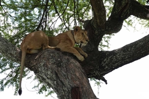 Nous avons eu cette chance durant cette de journée de voir les belles girafes Maasaï qui étaient au rendez-vous avec leurs bébés, diverses gazelles et antilopes, une belle lionne sur un très bel arbre mort et son amoureux un peu plus loin, des autruches, des babouins et plusieurs espèces d’oiseaux. Ce fut tout un safari sous un magnifique ciel bleu. Après avoir quitté le parc, nous avons fait route vers notre nouveau lodge pour les deux prochaines nuits.