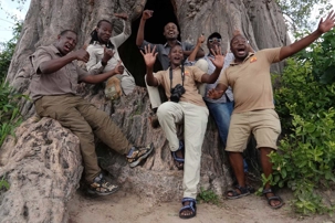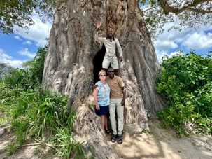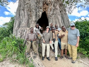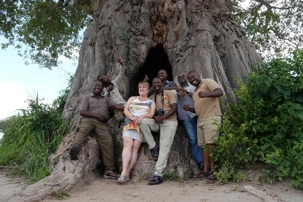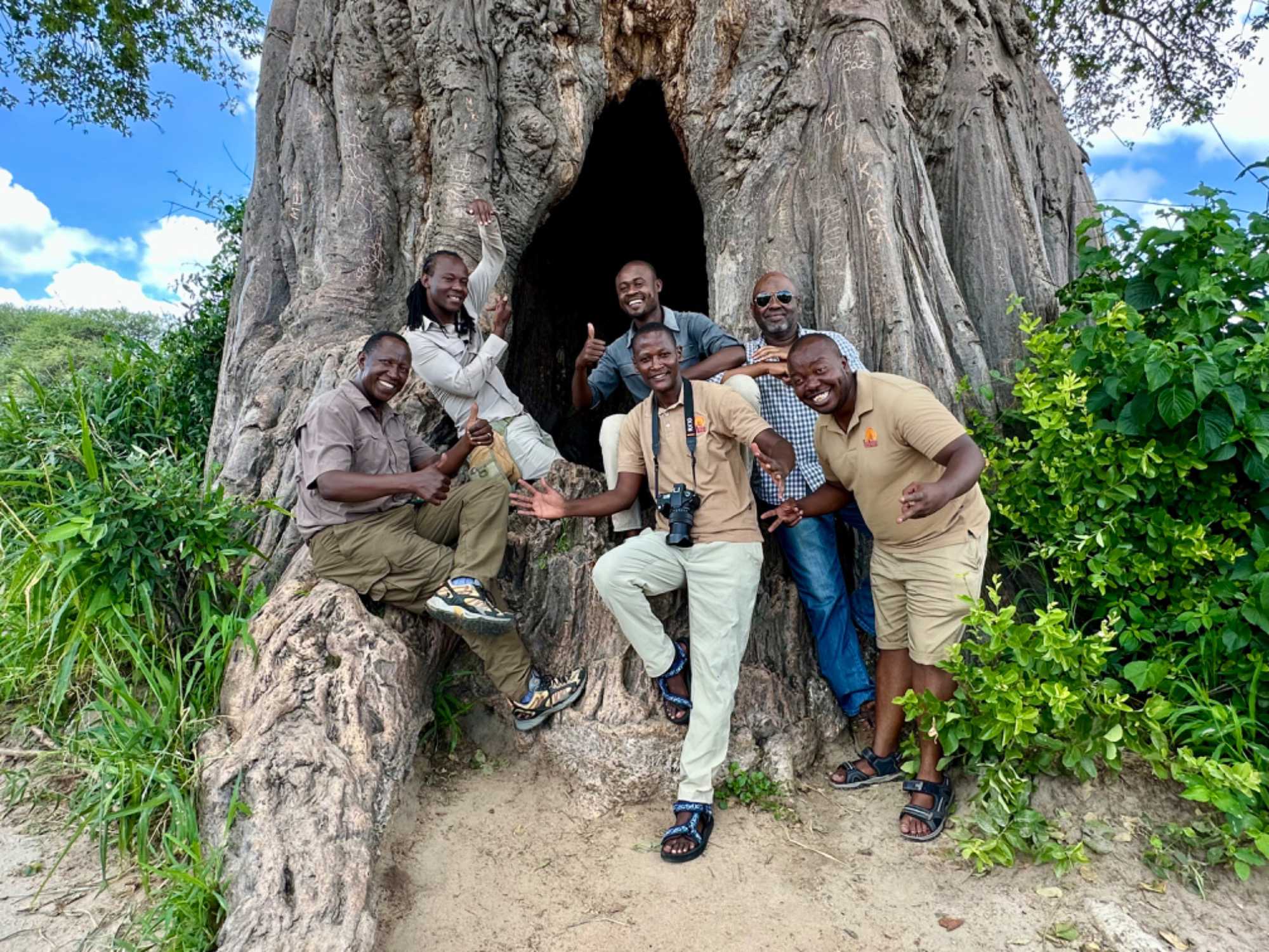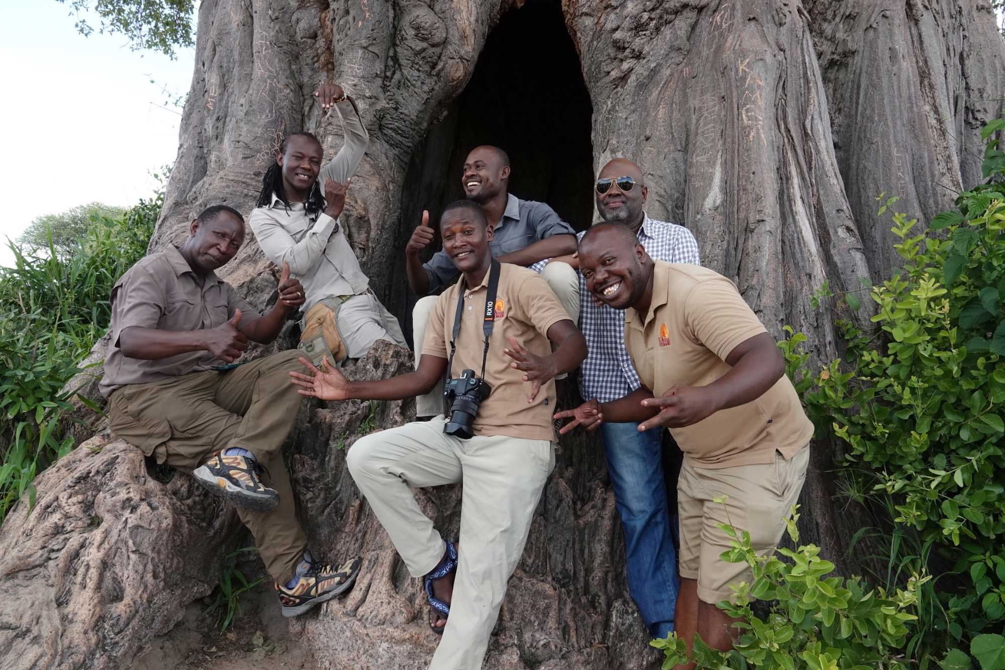 Les animaux aiment beaucoup ce parc grâce à la rivière Tarangire et aux célèbres Baobabs. La rivière donne aux éléphants la certitude d’y trouver de l’eau pendant la saison sèche. Ils ont aussi leur propre technique pour extraire l’eau des baobabs. Nous nous sommes arrêtés pour prendre une photo d’un immense baobab avec tout le groupe, c’était un baobab avec un immense trou à l’intérieur.