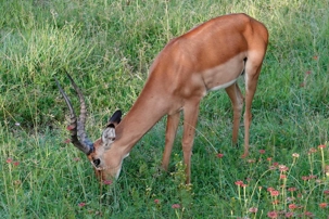 Nous entrons finalement dans les limites du parc ce matin et nous étions tous prêts à démarrer notre périple photo. Nos premières découvertes ont été celle d’un dik-dik qui sort de la broussaille pour nous saluer. Les dik-diks sont des antilopes naines, qui mesurent à l'épaule de 30 à 43 cm. Le nom « dik-dik » vient du bruit qu'ils font lorsqu'ils sont en danger. Les dik-diks pèsent de 3 à 5 kg. Ils ont un museau allongé, et une légère fourrure qui est grise sur le dos, et blanche au niveau du ventre. Sur le haut du crâne, le pelage forme une touffe droite, qui cache parfois partiellement les cornes courtes du mâle.
