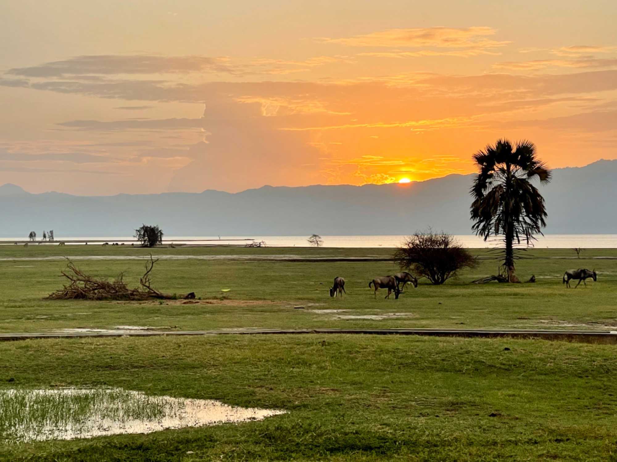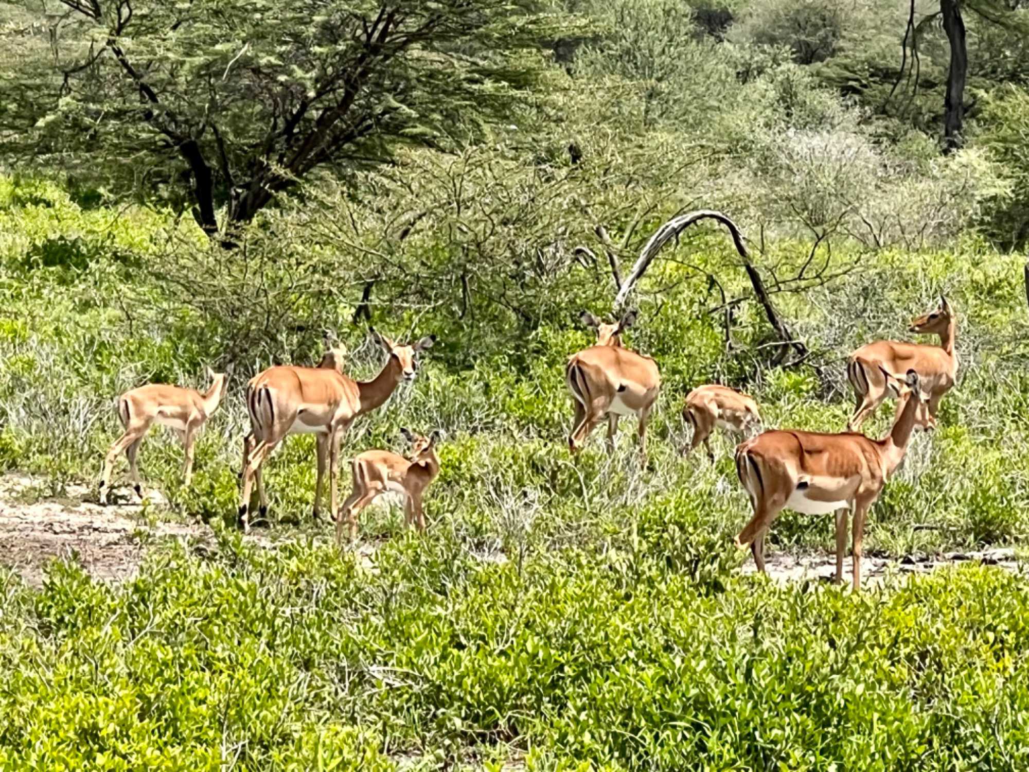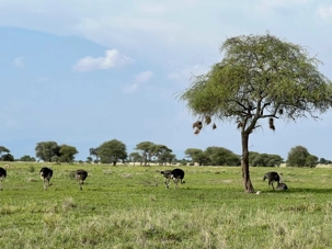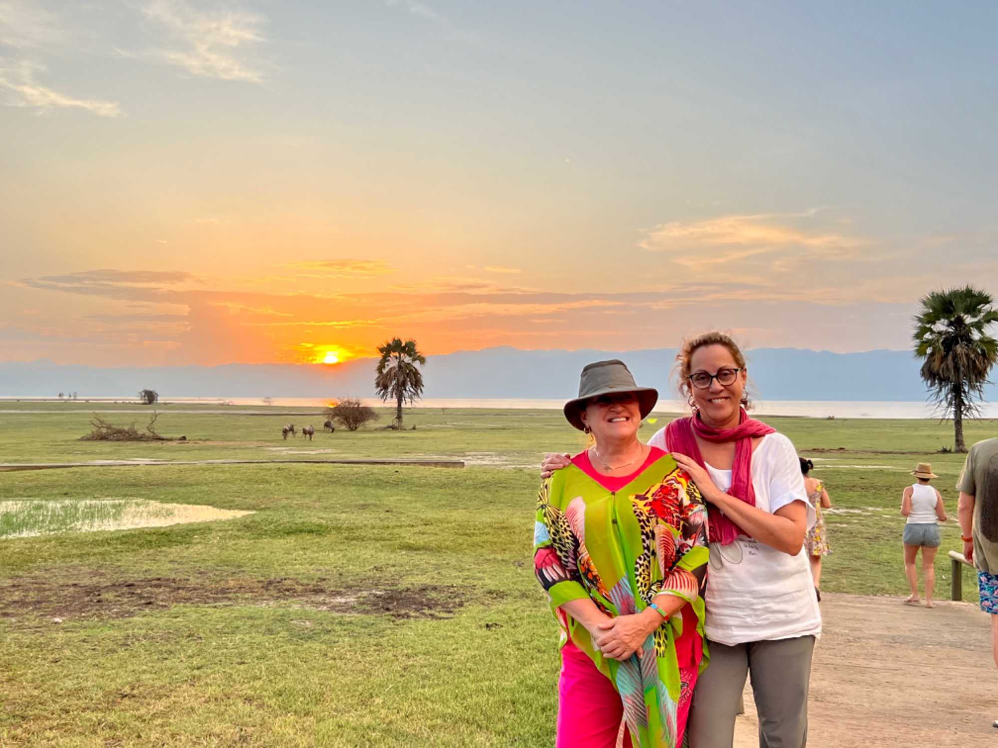 Aujourd'hui, nous quittons encore avec le chant du personnel pour nous dire aurevoir, notre beau lodge Duluti. Un petit pas de danse pour Gaby et Loulou et nous montons à bord de nos jeeps avec nos excellents guides. Nous visitons un peu la ville d’Arusha sur notre passage. Nous avons aussi pris un peu de temps pour faire quelques emplettes ou provisions pour nos séjours loin des villes. C’est aujourd’hui que nous ferons une journée complètes au parc national Tarangire. Cette merveilleuse réserve naturelle est la résidence de nombreux arbres géants, les baobabs, vous verrez quelques magnifiques photos de cette arbre immense. Quelques hôtels ont des chambres dans ces arbres. J’ai déjà eu la chance d’expérimenter ce type d’hébergement à la Robinson Crusoé…. J’avais validé les tarifs pour cette année et oufff les prix avec triplé. Nous avons donc arrêté notre choix pour un superbe complexe que nous découvrirons ce soir. La savane, la brousse et les marais saisonniers offrent un paysage sensationnel dans le parc où nos circulons aujourd’hui. Ce parc couvre près de 3'000 km², soit environ la taille du Luxembourg. Le parc national Tarangire est considéré comme l’un des meilleurs endroits en Afrique de l’Est pour observer les éléphants de près. Nous avons eu cette chance en fin de journée. Les belles girafes Maasaï étaient au rendez-vous avec leurs bébés, divers gazelles et antilopes, des buffles, des gnous, une belle lionne sur un très bel arbre mort, des autruches, des babouins et plusieurs espèces d’oiseaux. Ce fût tout un safari sous un magnifique ciel bleu. Notre lunch fût un moment aussi agréable de notre journée, nos guides avaient fait préparer un délicieux pique-nique pour nous que nous avons pris dans le parc à un endroit protégé. Après ce moment de ravitaillement nous avons repris la route sur d’autre pistes du parc en admirant la faune qui s’y promène. Après avoir quitté le parc nous avons fait route vers notre nouveau lodge pour les deux prochaines nuits. C’est le Maramboï tented lodge qui nous accueille ce soir. Situé entre le lac Manyara et le parc national du Tarangire, ce campement permanent offre des vues imprenables sur le paysage aride de la région, avec ses prairies vallonnées et ses déserts bordés de palmiers. Ses 30 tentes spacieuses sont surélevées et disposent d'une salle de bain et d’une véranda privée. Situé dans un endroit exceptionnel, ce campement donne un avant-goût de cette région où peu de visiteurs s’aventurent. L’apéro au coucher de soleil sur le lac était très beau et surtout unique car il y a des animaux partout tout autour. Nous nous installons dans nos jolies tentes de luxe et pour revenir au souper nous devons nous faire escorter car nous sommes oui cette fois ci chez nos amis les animaux. C’est tout un sentiment que celui de partagé leur résidence et d’être leurs invités. Nous vous en parlerons demain après une nuit avec eux. Le souper était délicieux et nous sommes tous enchantés de cette belle journée qui se termine.