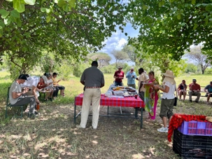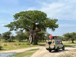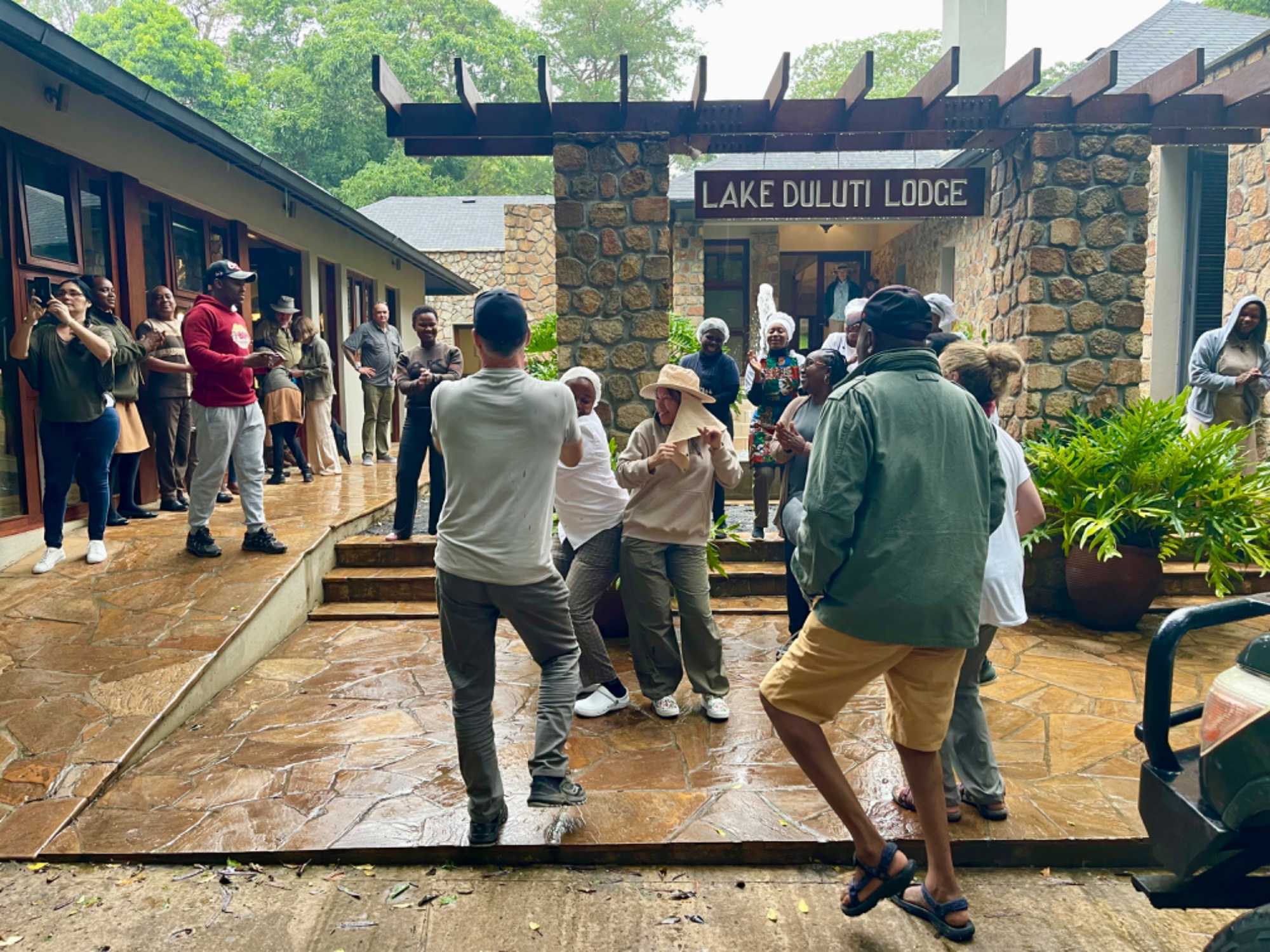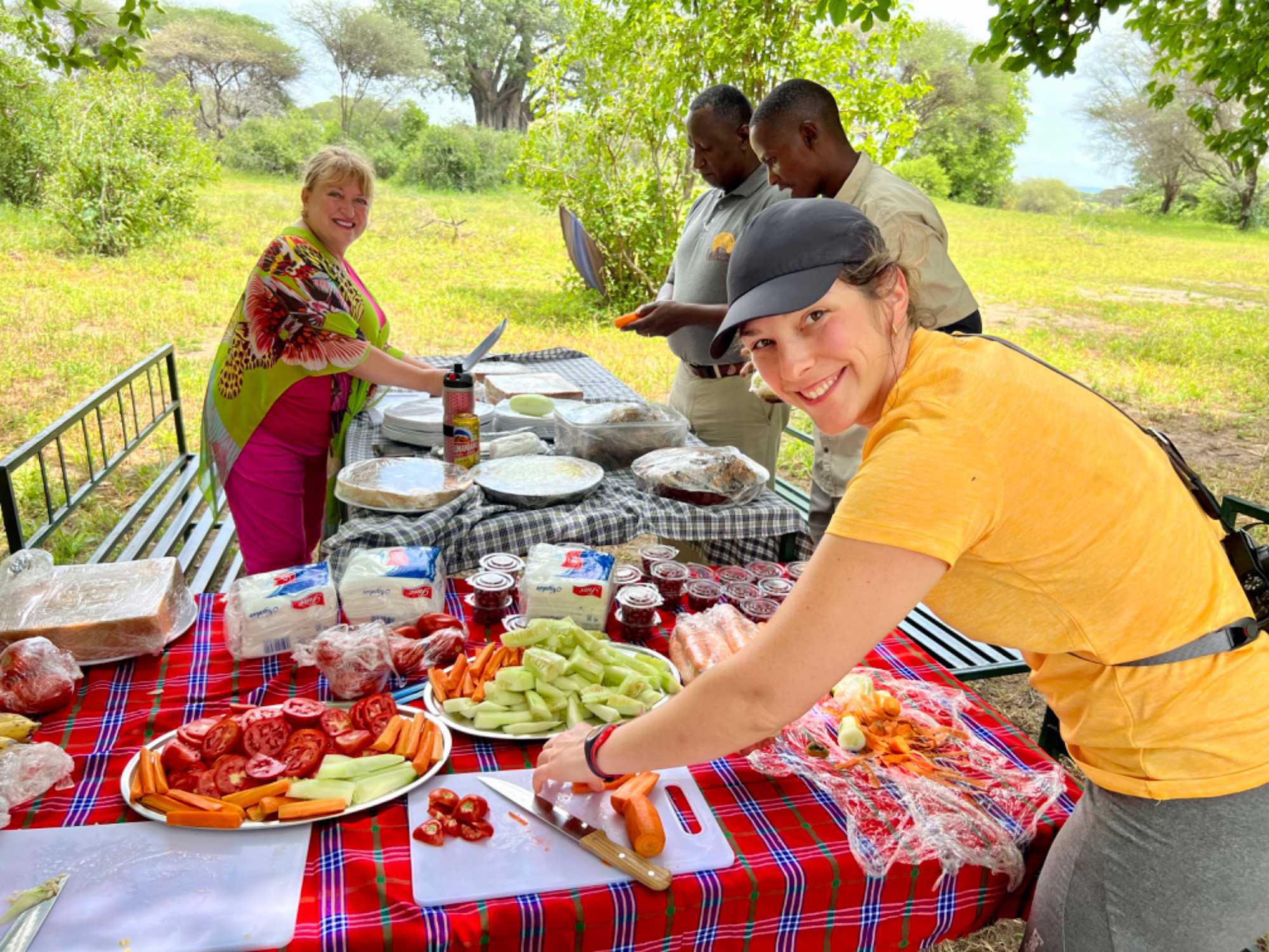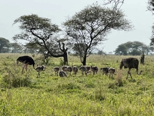 Aujourd'hui, nous quittons encore avec le chant du personnel pour nous dire aurevoir, notre beau lodge Duluti. Un petit pas de danse pour Gaby et Loulou et nous montons à bord de nos jeeps avec nos excellents guides. Nous visitons un peu la ville d’Arusha sur notre passage. Nous avons aussi pris un peu de temps pour faire quelques emplettes ou provisions pour nos séjours loin des villes. C’est aujourd’hui que nous ferons une journée complètes au parc national Tarangire. Cette merveilleuse réserve naturelle est la résidence de nombreux arbres géants, les baobabs, vous verrez quelques magnifiques photos de cette arbre immense. Quelques hôtels ont des chambres dans ces arbres. J’ai déjà eu la chance d’expérimenter ce type d’hébergement à la Robinson Crusoé…. J’avais validé les tarifs pour cette année et oufff les prix avec triplé. Nous avons donc arrêté notre choix pour un superbe complexe que nous découvrirons ce soir. La savane, la brousse et les marais saisonniers offrent un paysage sensationnel dans le parc où nos circulons aujourd’hui. Ce parc couvre près de 3'000 km², soit environ la taille du Luxembourg. Le parc national Tarangire est considéré comme l’un des meilleurs endroits en Afrique de l’Est pour observer les éléphants de près. Nous avons eu cette chance en fin de journée. Les belles girafes Maasaï étaient au rendez-vous avec leurs bébés, divers gazelles et antilopes, des buffles, des gnous, une belle lionne sur un très bel arbre mort, des autruches, des babouins et plusieurs espèces d’oiseaux. Ce fût tout un safari sous un magnifique ciel bleu. Notre lunch fût un moment aussi agréable de notre journée, nos guides avaient fait préparer un délicieux pique-nique pour nous que nous avons pris dans le parc à un endroit protégé. Après ce moment de ravitaillement nous avons repris la route sur d’autre pistes du parc en admirant la faune qui s’y promène. Après avoir quitté le parc nous avons fait route vers notre nouveau lodge pour les deux prochaines nuits. C’est le Maramboï tented lodge qui nous accueille ce soir. Situé entre le lac Manyara et le parc national du Tarangire, ce campement permanent offre des vues imprenables sur le paysage aride de la région, avec ses prairies vallonnées et ses déserts bordés de palmiers. Ses 30 tentes spacieuses sont surélevées et disposent d'une salle de bain et d’une véranda privée. Situé dans un endroit exceptionnel, ce campement donne un avant-goût de cette région où peu de visiteurs s’aventurent. L’apéro au coucher de soleil sur le lac était très beau et surtout unique car il y a des animaux partout tout autour. Nous nous installons dans nos jolies tentes de luxe et pour revenir au souper nous devons nous faire escorter car nous sommes oui cette fois ci chez nos amis les animaux. C’est tout un sentiment que celui de partagé leur résidence et d’être leurs invités. Nous vous en parlerons demain après une nuit avec eux. Le souper était délicieux et nous sommes tous enchantés de cette belle journée qui se termine.
