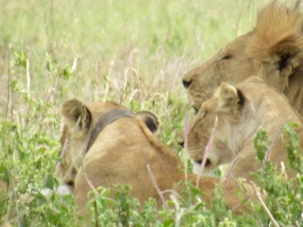Parlons un peu de notre nuit, quelle nuit magique que celle que nous venons de vivre. Nous sommes revenus vers nos villas après un super souper vers 22 h 00 escorté par notre maasaï qui de sa lampe de poche scrute l’horizon et se promène avec une lance affutée. Pour ma part, nous étions logés à la dernière villa tout au bout du sentier, entourés de Stéphane et Julie, Nicole et Yvan. À 3 h 20 de la nuit de très forts rugissements nous ont tous réveillés. Malgré les distances entre chacune des villas tous ont vécu le même réveil. Laissez moi vous expliquer, nous avons eu droit d’après les responsables du lodge, à 3 clans de lions d’environs 7 à 10 lions et lionnes qui voulant marquer leur territoire se répondaient avec des rugissements très intenses.