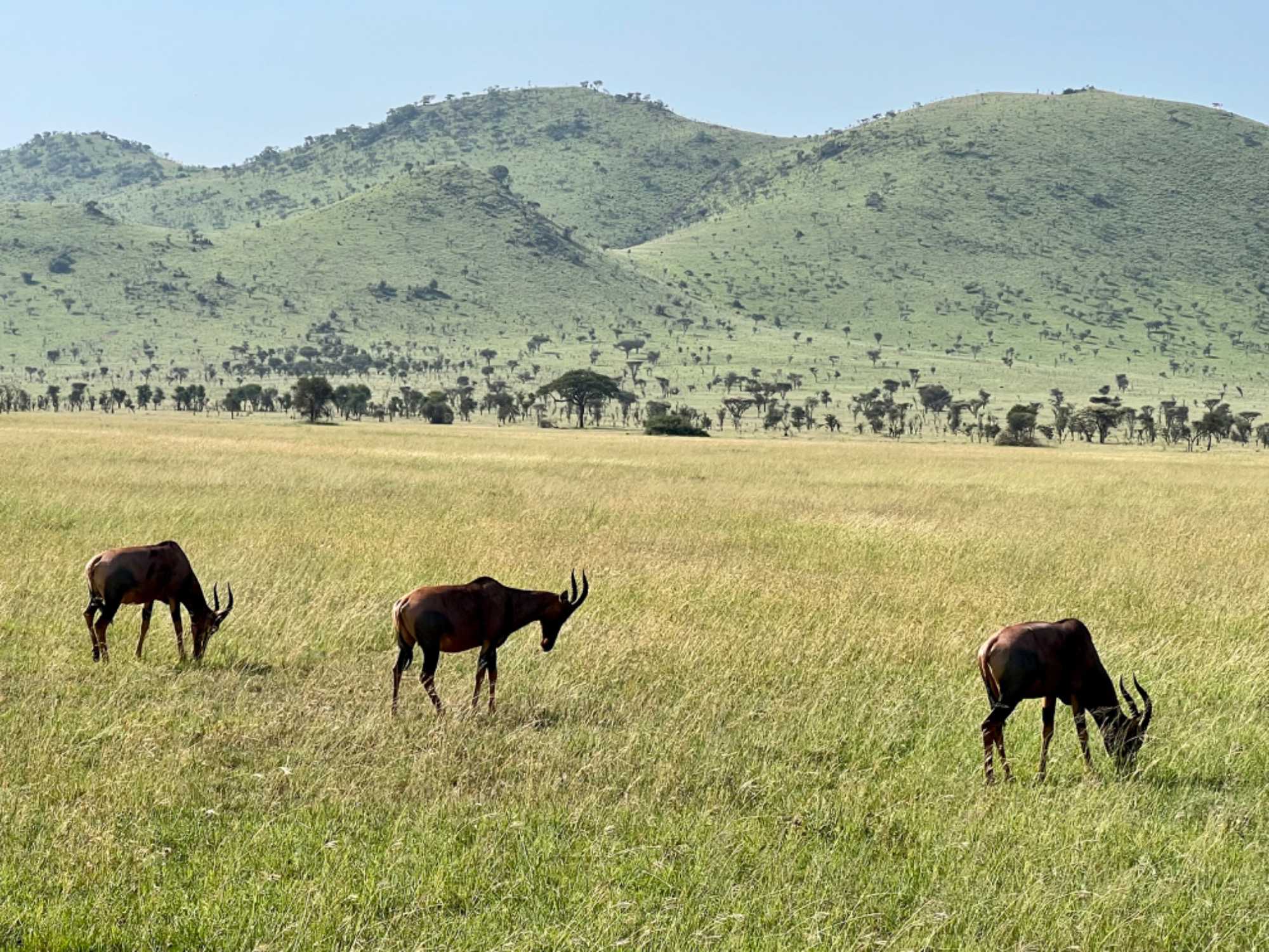 On compte de 800,000 à 900,000 gazelles tompson qui peuvent courir jusqu'à 80 km heure. Beaucoup de nourriture pour les prédateurs, lions, guépards et léopards. Un guépard peut courir de 112 à 120 km heure et son poids est d'environ 60 à 70 kl. Le léopard lui peut peser 100 kl.
