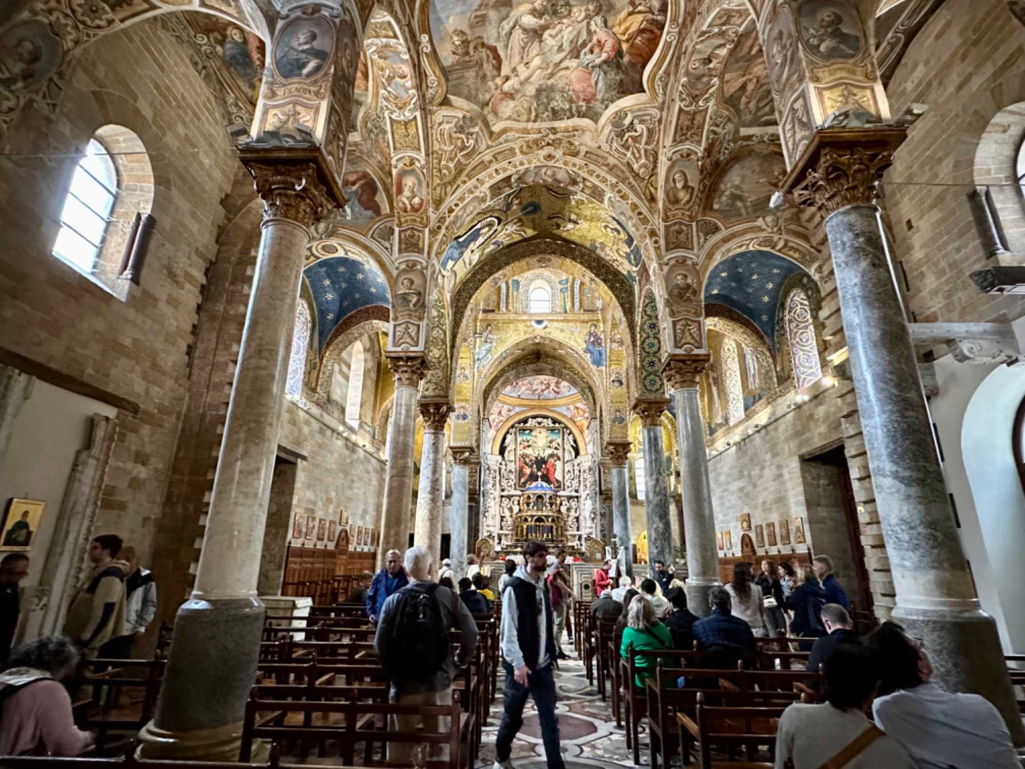 Elle est siège d’un archidiocèse, connue avant tout pour son exceptionnelle cathédrale arabo-normande, inscrite au patrimoine mondial de l’Unesco parmi neuf autres sites de cette époque (à Palerme et Cefalù). C’est l’un des plus beaux exemples de cette architecture, mêlant les influences normandes, arabes et byzantines. Son intérieur détonne avec les 42 mosaïques qui le couvrent entièrement. D’inspiration byzantine, elles représentent des scènes de l’Ancien et du Nouveau Testament. Nous avons aussi fait un court passage au cloître de la ville avant de revenir à notre hôtel. Un peu de repos et ce soir nous sortons à nouveau pour notre deuxième souper en ville. Un charmant restaurant nous attendait, la nourriture y était encore une fois exceptionnelle et délicieuse tout comme les vins. Nous avons passé une autre magnifique journée en Sicile.