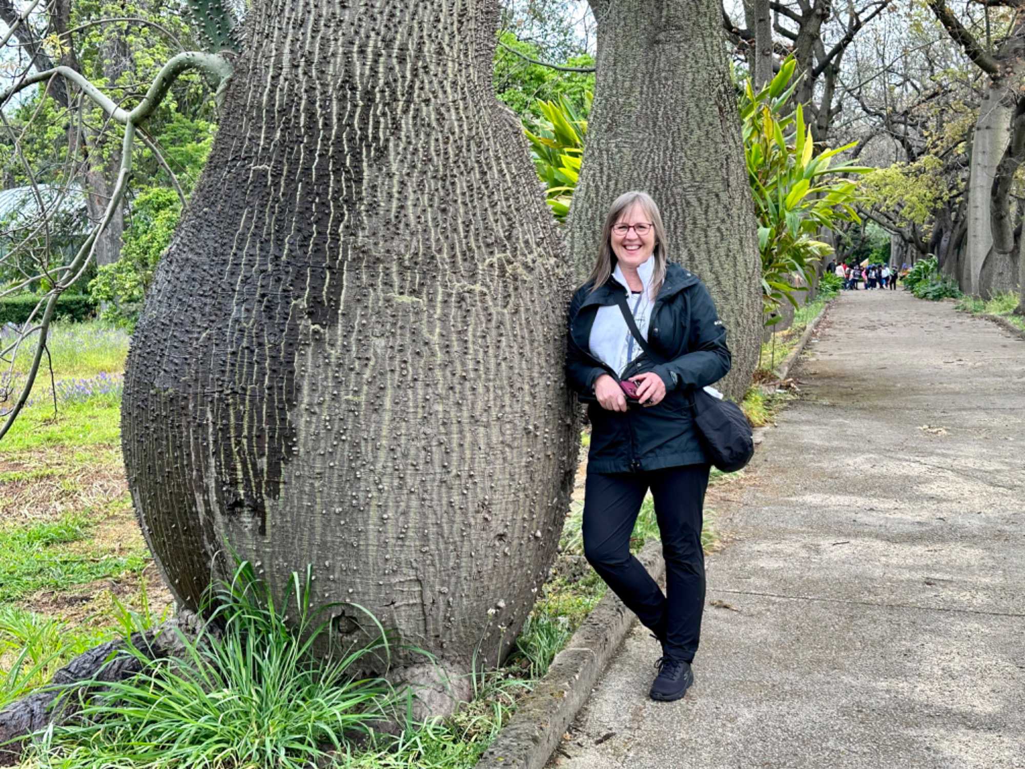 Le jardin fut inauguré en 1795, il sera enrichi progressivement jusqu'en 1820 de différents bâtiments et extensions dont les plus représentatifs sont le grand bassin pour plantes aquatiques puis la serre Marie-Caroline ou jardin d’hiver, ainsi qu’un ensemble de serres remarquables de plus de 1300 m2. C’est dans ce jardin que sera acclimaté puis introduit plus largement l’Eriobotrya japonica. Le grand Ficus magnolioides, qui est devenu le symbole du Jardin moderne, fut importé de l'Île Norfolk (Australie) en 1845. Ce sont actuellement plus de 12 000 espèces qui sont représentées dans le jardin de 10 hectares. Les gigantesques Ficus magnolioïodes (Ficus Macrophylla columnaris) rythment une partie du jardin : ces arbres démesurés sont tout simplement hors norme avoisinant plus de 20 m de diamètre ! Ils possèdent des racines aériennes qui viennent s’implanter dans le sol en formant un lacis de lianes rigides extraordinaires, permettant de soutenir la prodigieuse ramure. On tombe aussi rapidement sur des bambous géants d’origine birmane (Dendrocalamus giganteus ‘Murno’) tout près du bassin. On rencontre au fil de la promenade des floraisons inconnues chez nous, comme celles du Ceiba speciosa (Kapokier), aussi appelé arbre bouteille en raison de la forme de son tronc épineux intrigant. Originaire du Brésil, ses fleurs ressemblant à des Lys sont d’un exotisme fou et Isabelle nous explique que le kapokier est un arbre sacré pour les mayas, qu'ils appelaient le yaxché. Le kapokier fournit le kapok, une fibre contenue dans le fruit qui a la propriété de rester imperméable. Cette fibre fut utilisée pour la confection des gilets de sauvetage. Nous quittons ce beau site pour nous promener dans la ville. Notre deuxième arrêt était au centre de Palerme et nous avons visité une superbe petite église, « l’Église della Martorana de Palerme »