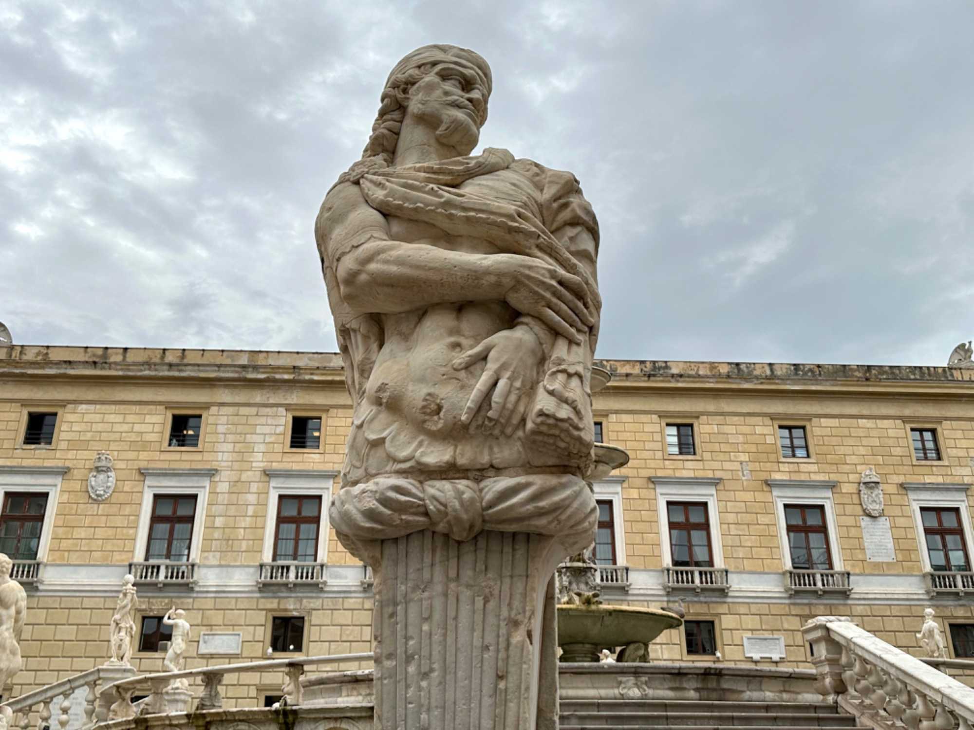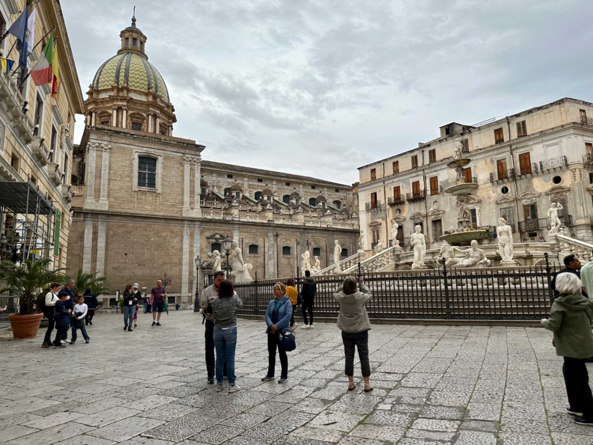 Nous nous réveillons de bien bonne humeur après une bonne nuit de sommeil. C’est bien nous avons une belle journée qui nous attend pour découvrir Palerme avec notre charmante guide Isabelle. Isabelle est bretonne mais elle a vécu 20 ans en Sicile. Nous quittons donc pour découvrir les plus beaux endroits de la ville dans un autobus très confortable. Mais quelle circulation à Palerme. C’est l’enfer pour notre chauffeur qui a été pris dans un bouchon à cause d’un accident ce matin en venant nous chercher à l’hôtel.