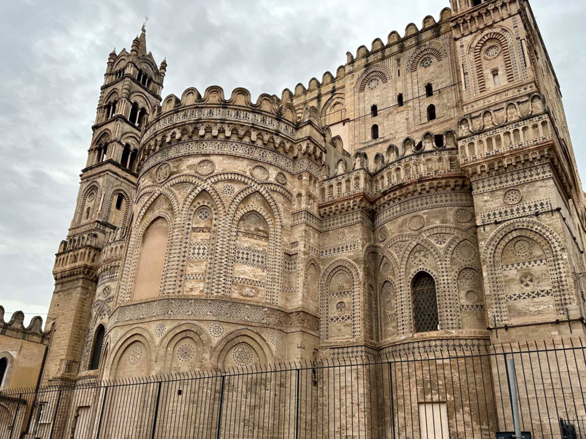 Georges d’Antioche, officier syrien de confession byzantine, fait construire cette église au milieu du 12ème siècle à côté de son palais. Il dédie le monument à la mère de Dieu pour la remercier de la protection que celle-ci lui avait accordée durant sa longue vie d’officier marin. Ce gigantesque décor de mosaïques, qui recouvre entièrement les voûtes et les arcs de l'église byzantine, d'origine en croix grecque, est l'un des plus importants au monde. Nous avons continué sur les belles grandes places de Palerme avant de s’arrêter pour le lunch typique en plein cœur du marché de Palerme. Quelle belle expérience et amusante de déguster leurs spécialités dans la folie de ce marché. Nous nous sommes bien amusés et nous avons mangé à la bonne franquette leur spécialité accompagné d’une bonne bière. Par la suite nous avons fait un saut par la cathédrale de Palerme. La cathédrale de Palerme, dédiée à Notre-Dame de l’Assomption, fut édifiée au XIIe siècle. Elle est marquée par un style arabo-normand, propre à la Sicile.