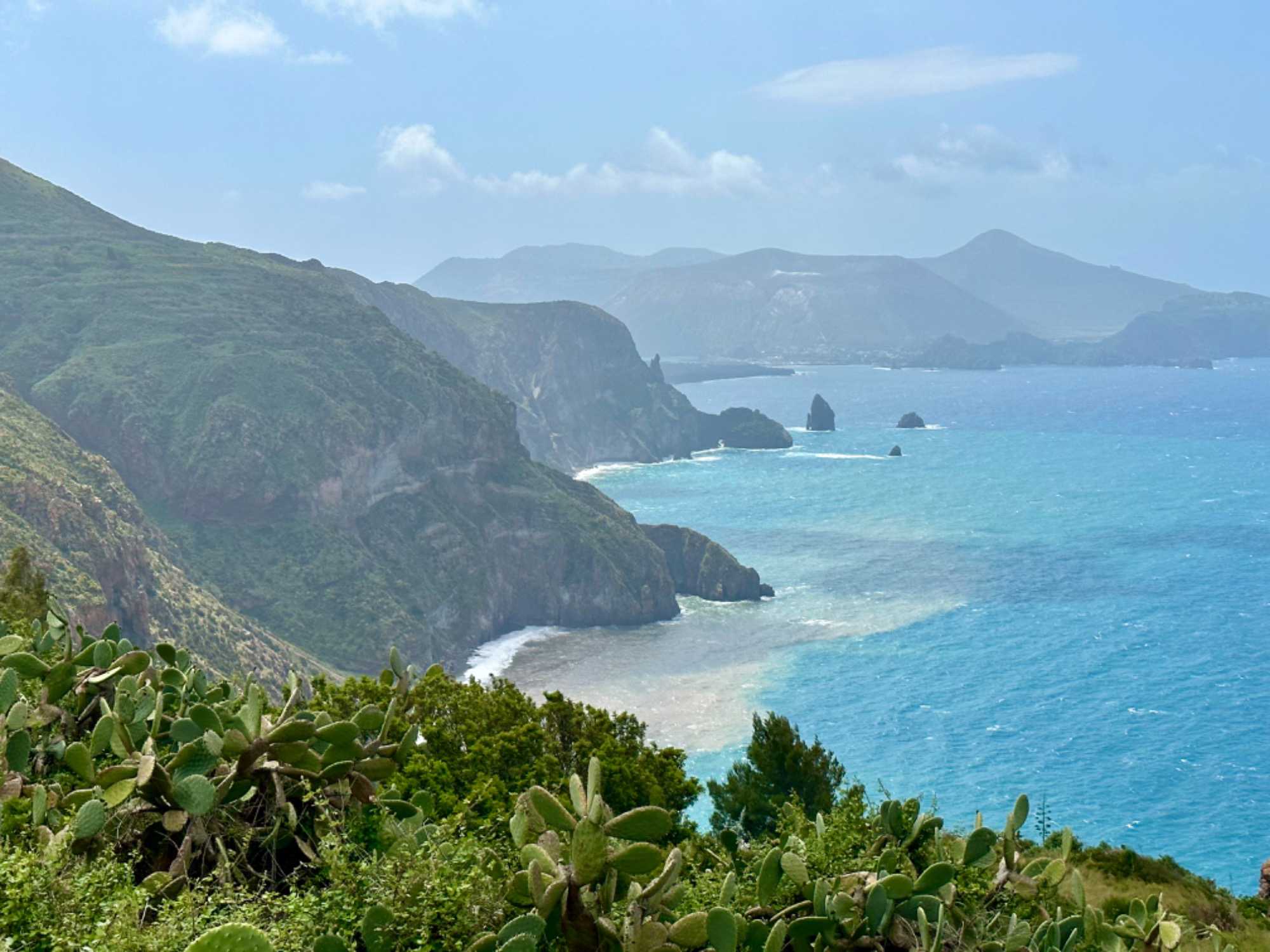 Chaque journée sera marquée par la mer qui est l’élément principal de l’île. Nous avons vu la plage de Porticello qui est une baie de galets sur la côte nord de l’île. Aussi la Plage Blanche, près de Canneto, qui est la plus célèbre de l’île. Canneto est une petite ville à environ 3 km du centre de Lipari, qui offre une longue plage tranquille, une destination préférée des habitants et des visiteurs de l’île. Ici, un chemin mène après une courte promenade directement à la mer. La couleur de la mer à cet endroit est époustouflante, d’un turquoise intense et clair grâce aux dépôts de pierre ponce sur les fonds marins qui contrastent avec les couleurs du ciel et la clarté de la mer. Vous verrez mes photos c’est plus que WOW! Ces paysages grandioses tout le long de notre circuit sur les 30 km de route qui encercle la ville. Les paysages étaient époustouflants. Allez voir mes photos! Il y avait aussi la plage de Campobianco, ainsi appelée pour sa blancheur, possède l’un des plus beaux décors de tout l’archipel. Les fleurs et le bleu turquoise de la mer nous a fasciné durant notre circuit en autobus.