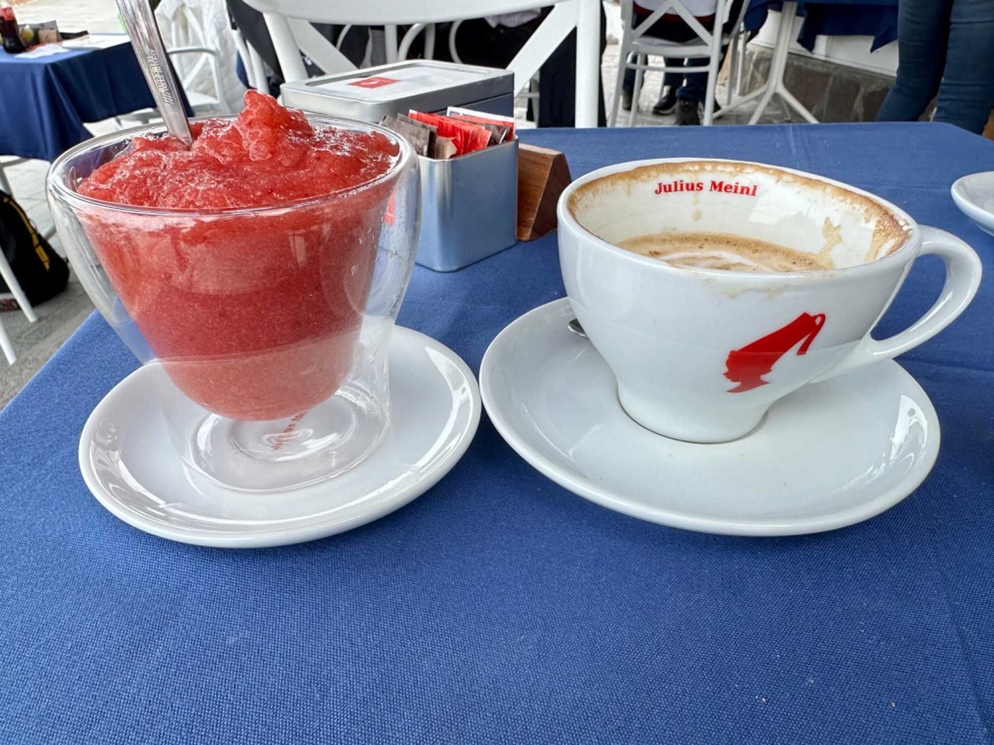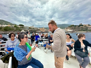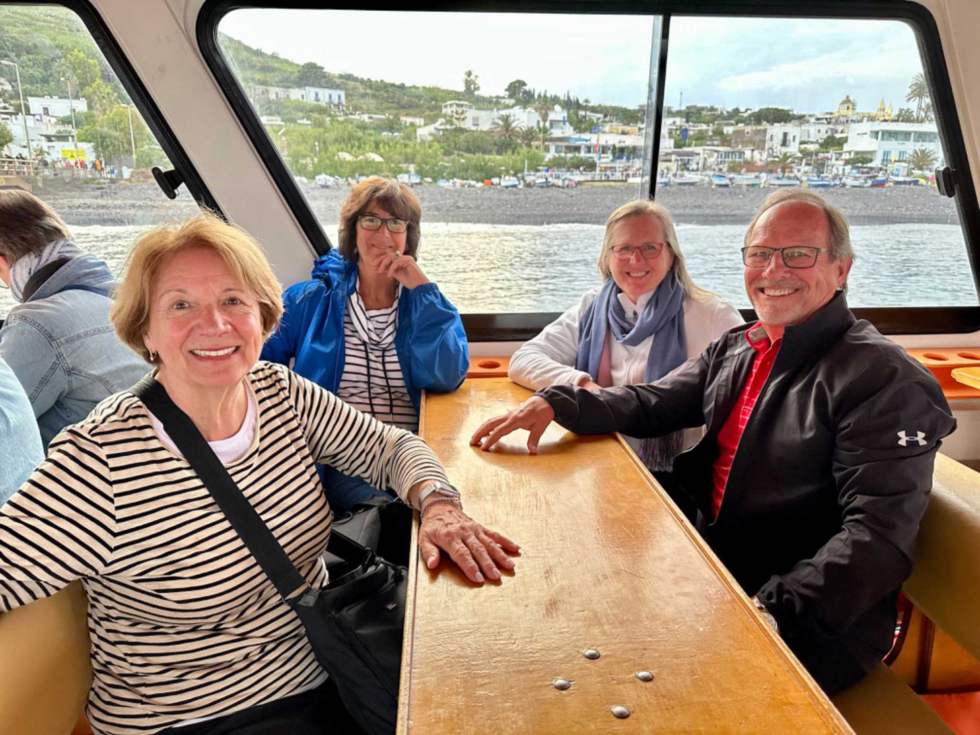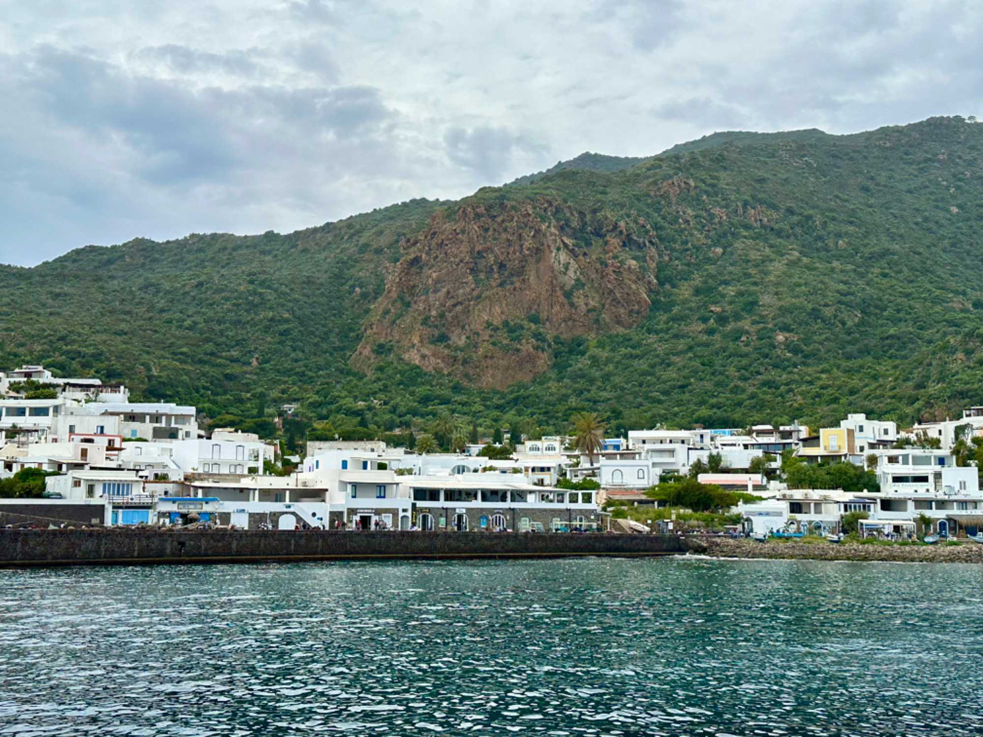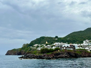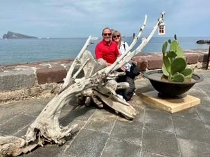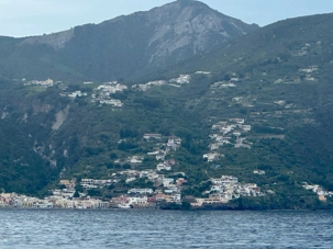 Sa ville et son port sont à San Pietro et ici toutes les maisons sont peintes en blanc avec des détails en bleu. C'est très attrayant et la vue d'ici sur Stromboli et certaines des autres îles est magnifique. Il existe différents hôtels et appartements à louer dans la ville, mais le plus célèbre est l’hôtel Raya, construit dans les années 1960 et depuis lors, une destination de choix pour cette clientèle de luxe. Les boutiques que nous avons vues aussi étaient assez hors de prix. Nous avions un arrêt de juste un peu plus d’une heure. Le temps de prendre un café ou un granité ce que plusieurs en ont profité pour faire. Nous sommes par la suite remontés à bord de notre bateau pour faire la navigation vers Stromboli. Environ 45 minutes nous séparaient de l’île volcanique de Stromboli. Nous débarquons donc dans ce petit village de 250 habitants, ils ont été avant la pandémie un nombre de 450 habitants. C’est l’endroit idéal pour se reposer en bord de mer ou pour tenter l’ascension du volcan. Il faut prévoir environ 5 heures pour faire cette ascension et revenir. Nous avons vu plusieurs personnes s’y préparer pour le faire et il faut vous dire que c’est très populaire. Nous avons marché un peu pour admirer certains points de vue avant de revenir pour notre souper authentique servie par Zoorko dans son restaurant. Il est nâtif de l’île et il fait parti d’une des plus vieilles familles de Stromboli. Nous avons mangé des poissons fraichement pêchés du matin en ceviche et pour le plat principal ce fût de l’espadon qui était juste trop bon. Un super souper et nous avons terminé par des biscuits qu’il avait fait pour nous avec de l’encre de seiche. Nous devions trempés nos biscuits dans un verre de malvasia. Le Malvasia est produit au moyen de techniques qui ont très peu évolué au cours des siècles. Les raisins sont cueillis après avoir atteint une maturation extrême et exposés au soleil pendant 10/15 jours. C’est une boisson typique de Lipari. Un excellent repas dans un endroit sans prétention que tous ont adoré. C’est le temps de remonter à bord pour retourner à Lipari mais avant nous nous arrêtons pour attendre l’explosion du Stromboli qui normalement explose au 12 à 15 minutes. Ce fût le cas et nous avons pris des photos c’est impressionnant de voir cette explosion. Merci à Daniel qui m’a donnée deux photos prises avec son appareil avec un zoom. C’est mieux que mon iphone même si les photos ne sont pas si mal non plus.