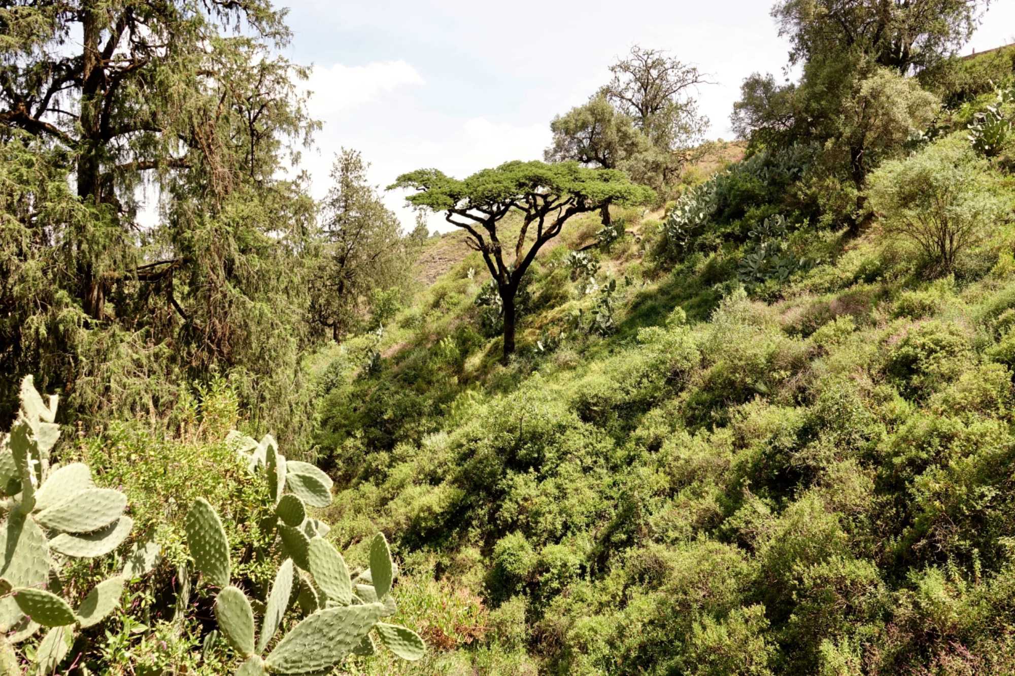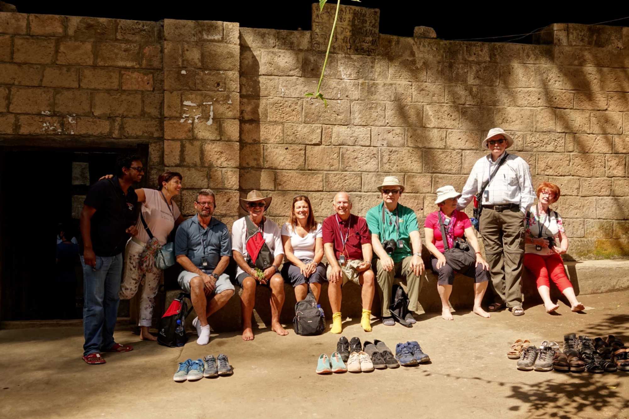 C’est sous une belle journée ensoleillée et qui s’annonce chaude et après avoir pris un bon petit-déjeuner que nous partons la découverte de l’église-cave de Yemrehana Krestos (‘‘Dieu nous montre la Voie’’) ce matin. Située à 42 km de Lalibela, il s'agit d'une église rupestre construite entre le 11e et le 12e siècle. C’est la plus belle église-monastère des environs de Lalibela, un véritable chef-d’oeuvre et joyau de l’art médiéval éthiopien. Elle est bâtie en bois et en pierre sous une grotte.