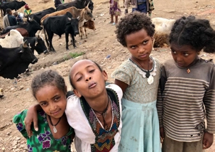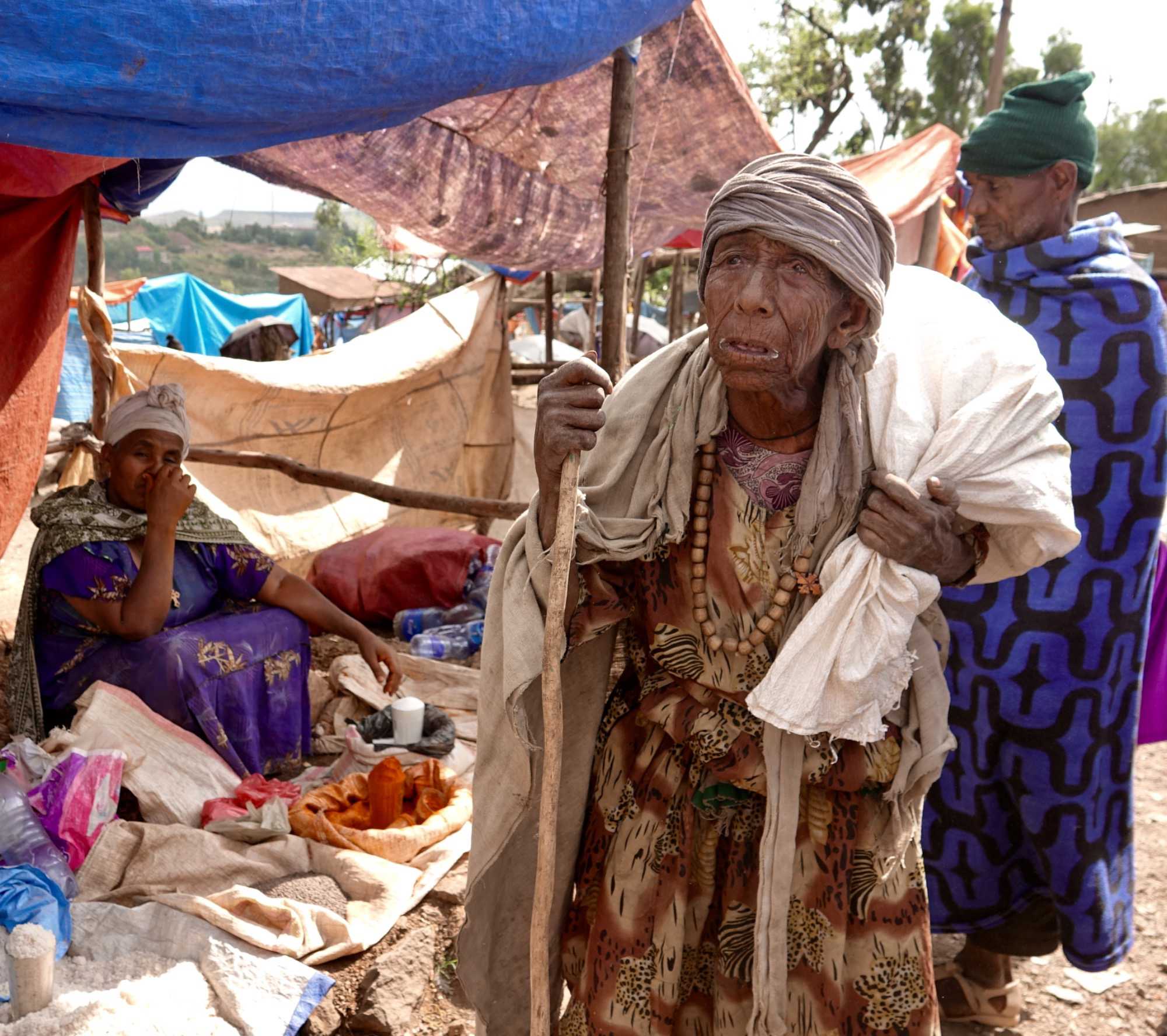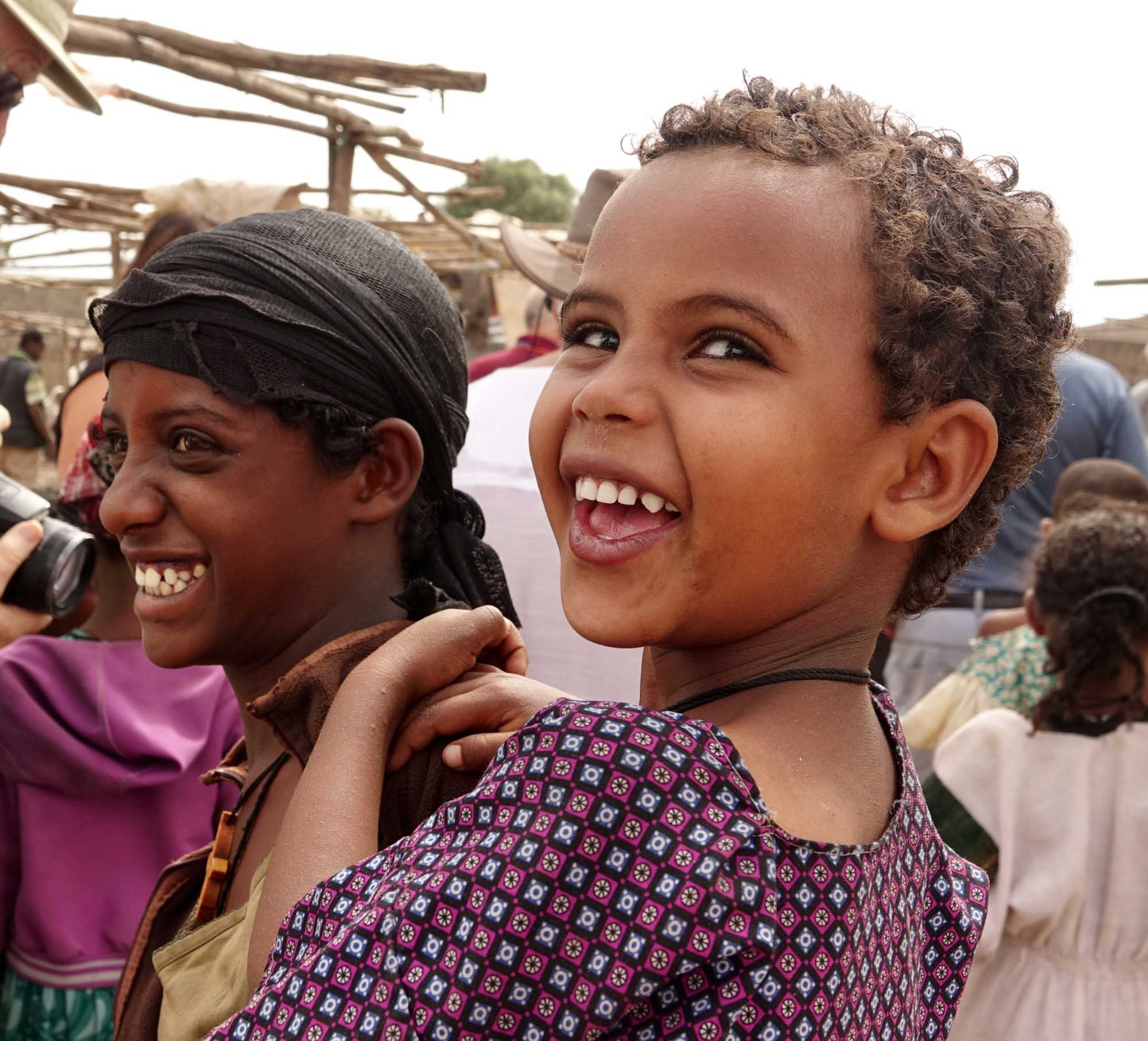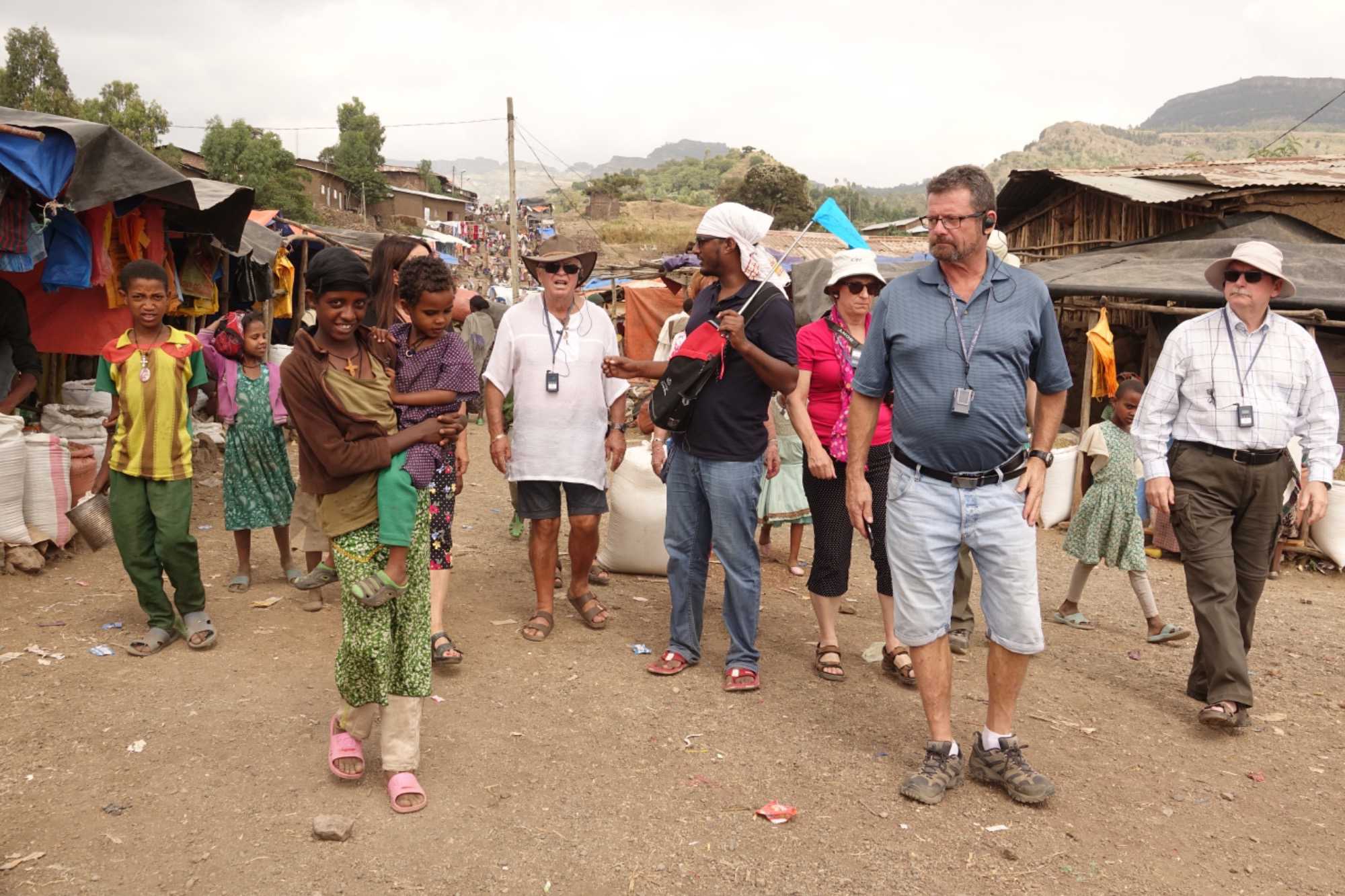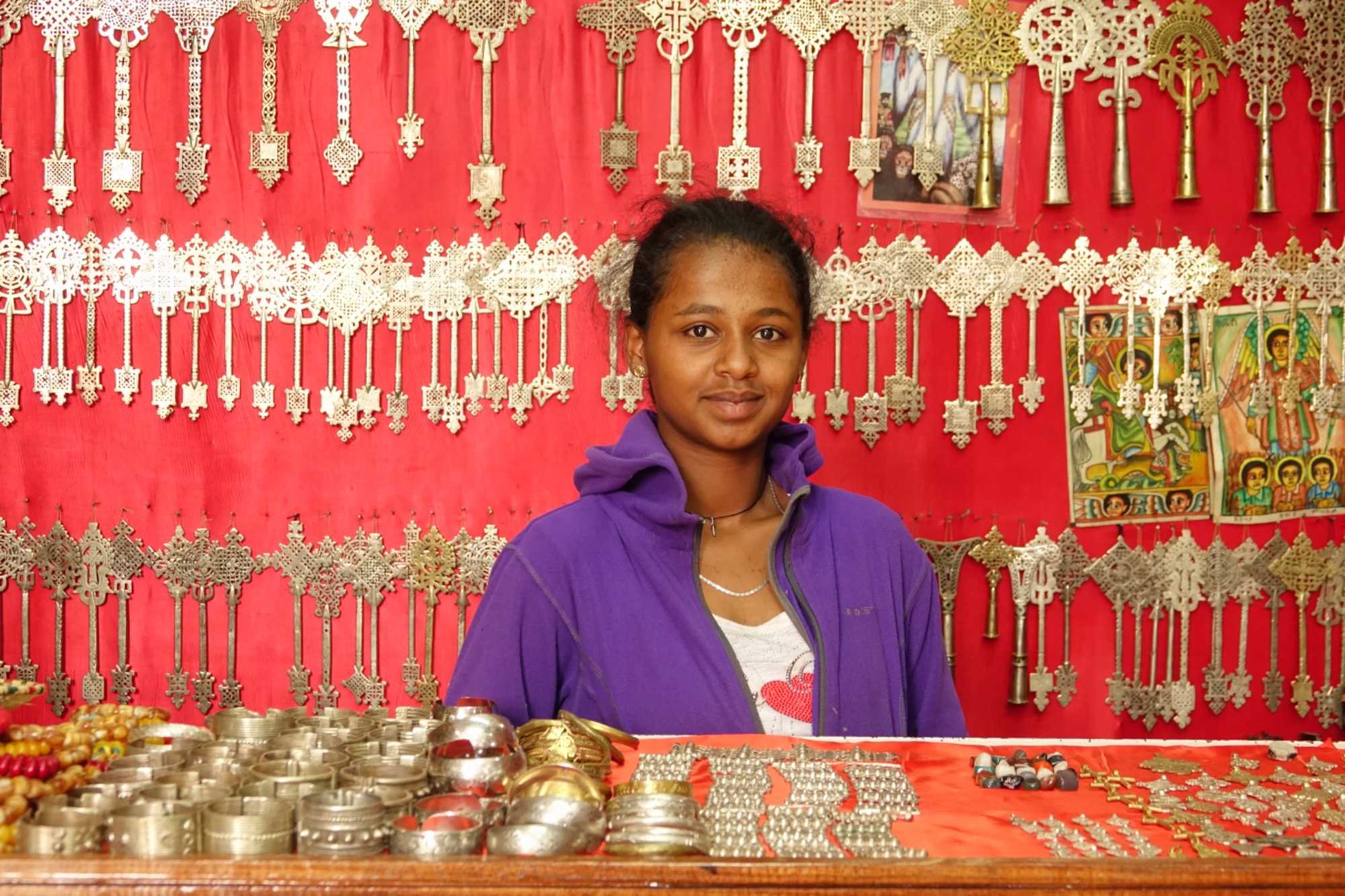 Au retour vers Lalibela, nous nous arrêtons au marché local. Une belle frénésie y existe et on voit différentes communautés y cohabiter (on le voit à leurs costumes différents). Nous déambulons avec notre guide à travers les étalages, les animaux, le peuple qui vend ou achète. C’est tout un bain de foule mais bien intéressant pour nous occidentaux. Les gens sont sympathiques et nous pouvons photographier plusieurs vendeurs ou vendeuses durant leur travail. Les enfants prennent plaisir à tenter de nous parler et cela nous amuse de les voir essayer de communiquer. Ils nous suivent comme des mouches par contre…. Il faut voir cela avec amusement. Quel plaisir nous avons à vivre ces beaux moments.
