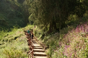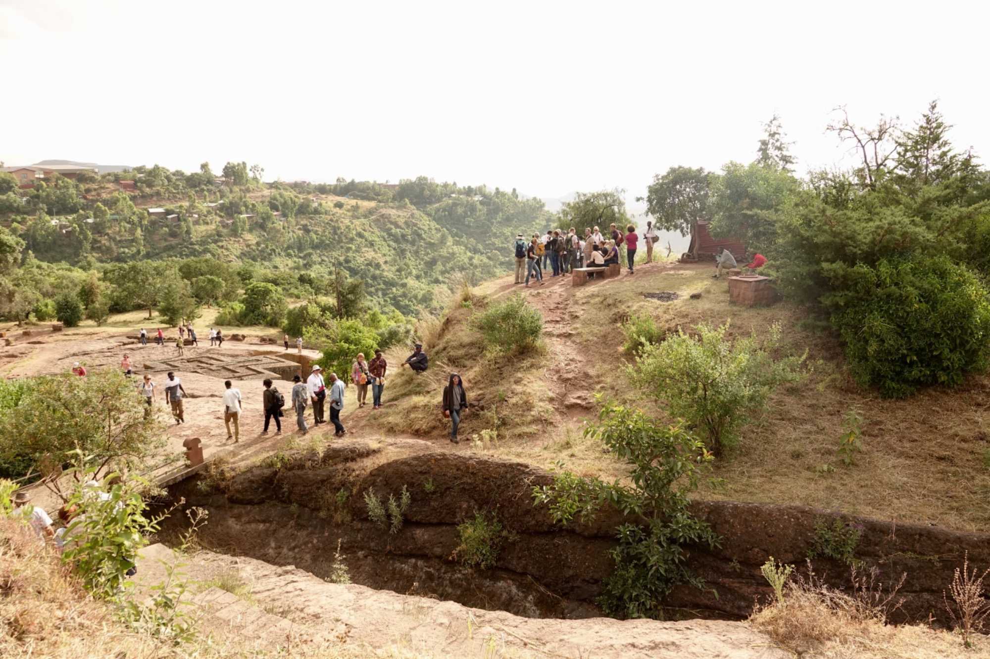 L’accès à cette église est relativement facile malgré la montée et l’altitude, il faut juste prendre le temps et monter plus lentement ce que nous avons fait. Mais le plus impressionnant c’est la route pour s’y rendre. Aujourd’hui c’est samedi et le samedi c’est le jour des marchés locaux. Le nombre de personnes marchant sur la route est incroyable. Ils se dirigent vers le marché local de Lalibela qui se tient toute la journée. Souvent plusieurs doivent partir dans la nuit et marcher plus de 6 heures. Voir tous ces gens marcher avec leurs bêtes à vendre c’est se retrouver dans un autre siècle. Les champs sont splendides et même si la route est d’un carrossable douteux…. Nous apprécions cette découverte et voir toute la vie rurale est vraiment amusante aussi. Difficile de décrire ce que nous voyons et tous ces beaux paysages de montagne. C’est vraiment comme vivre au siècle passé.