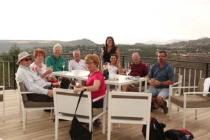 Ce soir, à notre retour nous prenons l’apéro dehors nous prenons sur la terrasse de notre lodge et admirons le paysage tout autour de nous. C’est vraiment très beau. Nous avions acheté du champagne (méthode champenoise) ontarien à Toronto, il était surprenant et nous avons bien apprécié les quelques bouteilles partagées entre nous. Nous avons beaucoup de plaisir tous ensemble. La photo que Sophie a prise est bien drôle surtout de voir la piscine toute vide donc sans eau….. on m’a bien agacée en me disant on se baigne ce soir Louise, nous avons nos maillots….