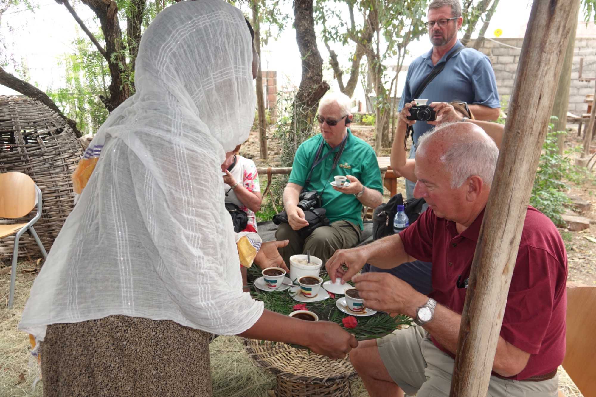 Maintenant c’est le temps de découvrir la cérémonie du café. Ici en Éthiopie la cérémonie du café à une place importante. Le café ne se fait pas rapidement et il y a tout un décorum…. Nous avons eu la chance de vivre cette expérience et le café est vraiment délicieux. J’ai fait une petite vidéo que je vais mettre sur le Facebook de l’agence.