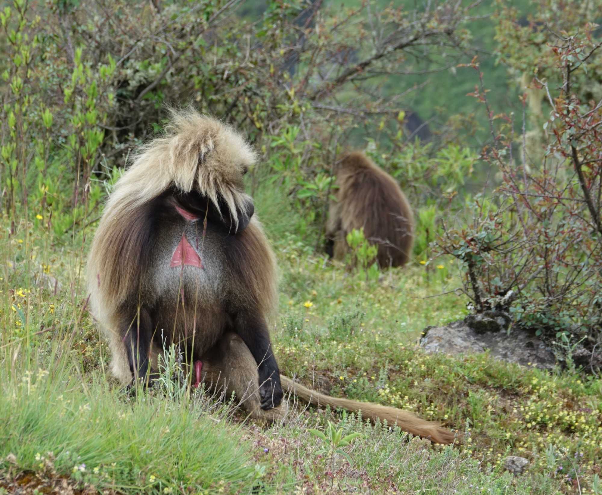 Nous nous sommes assis tout près d’eux et nous les avons admirés dans leur habitat naturel pendant un bon bout de temps. Nous avions visionné un très bon film sur ces babouins uniques que l’on retrouve juste ici en Éthiopie, à notre lodge à notre arrivée et nous avions bien hâte de les voir ces amusants babouins. Leur cœur rouge sur leur poitrine est remarquable et unique.