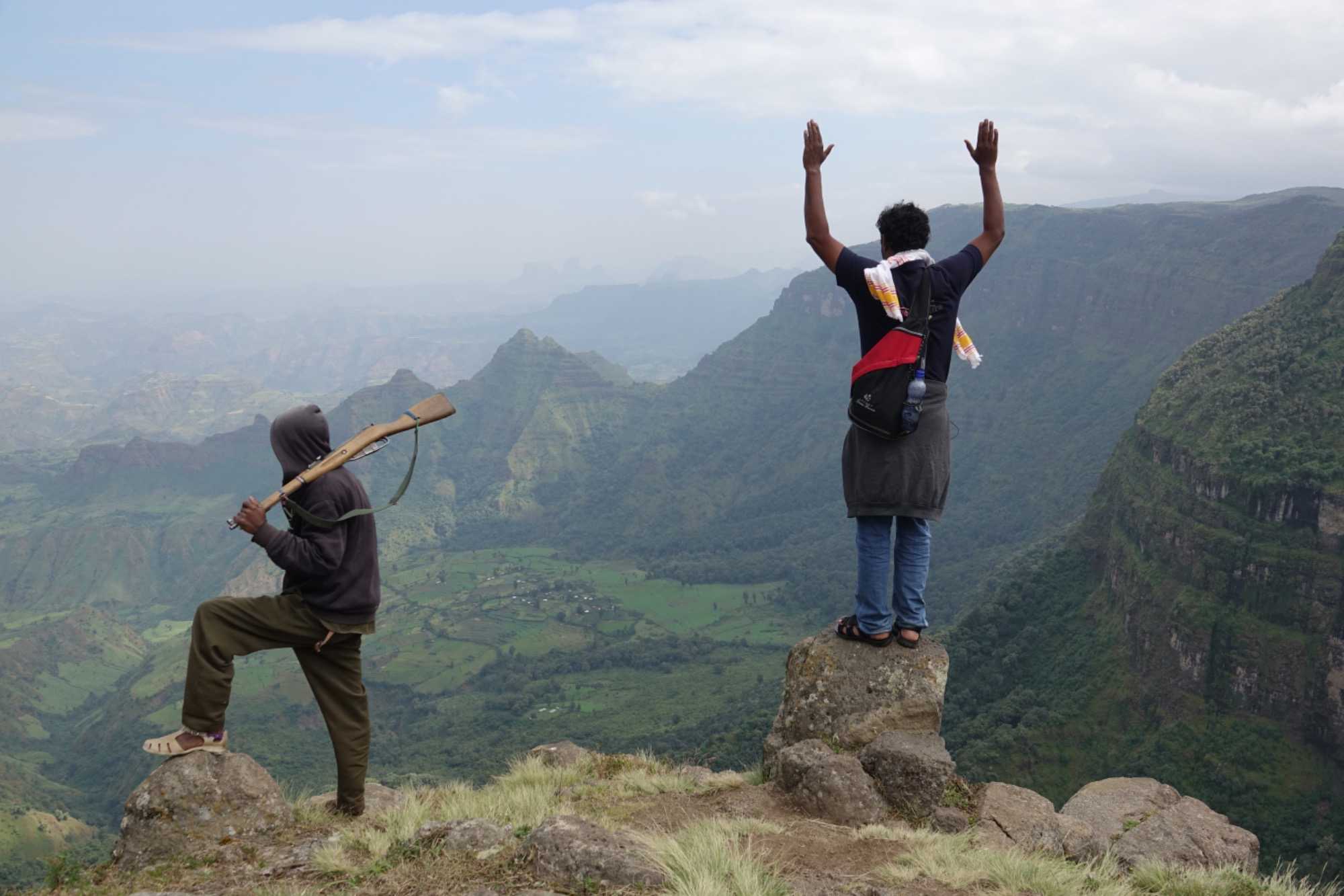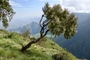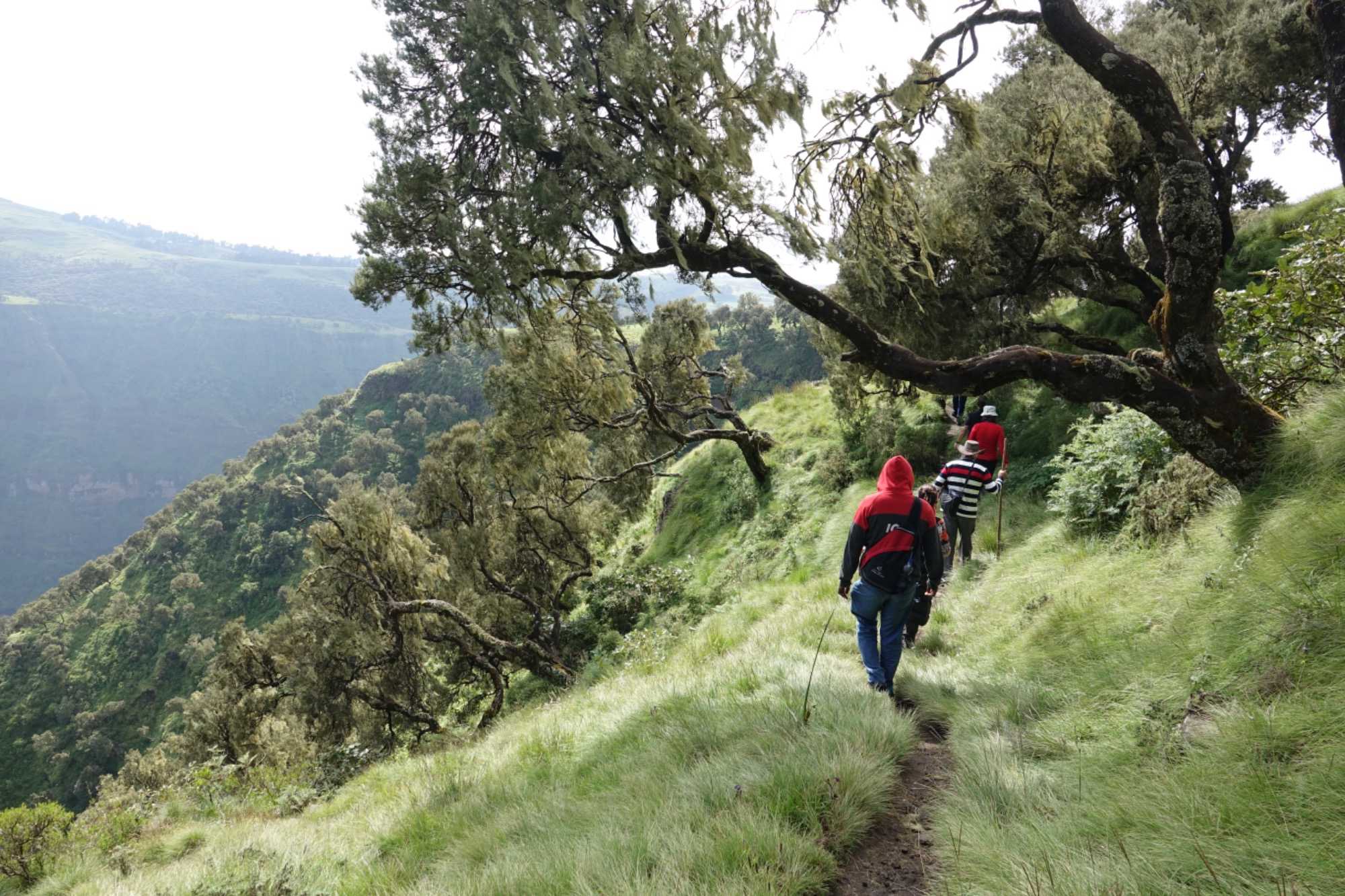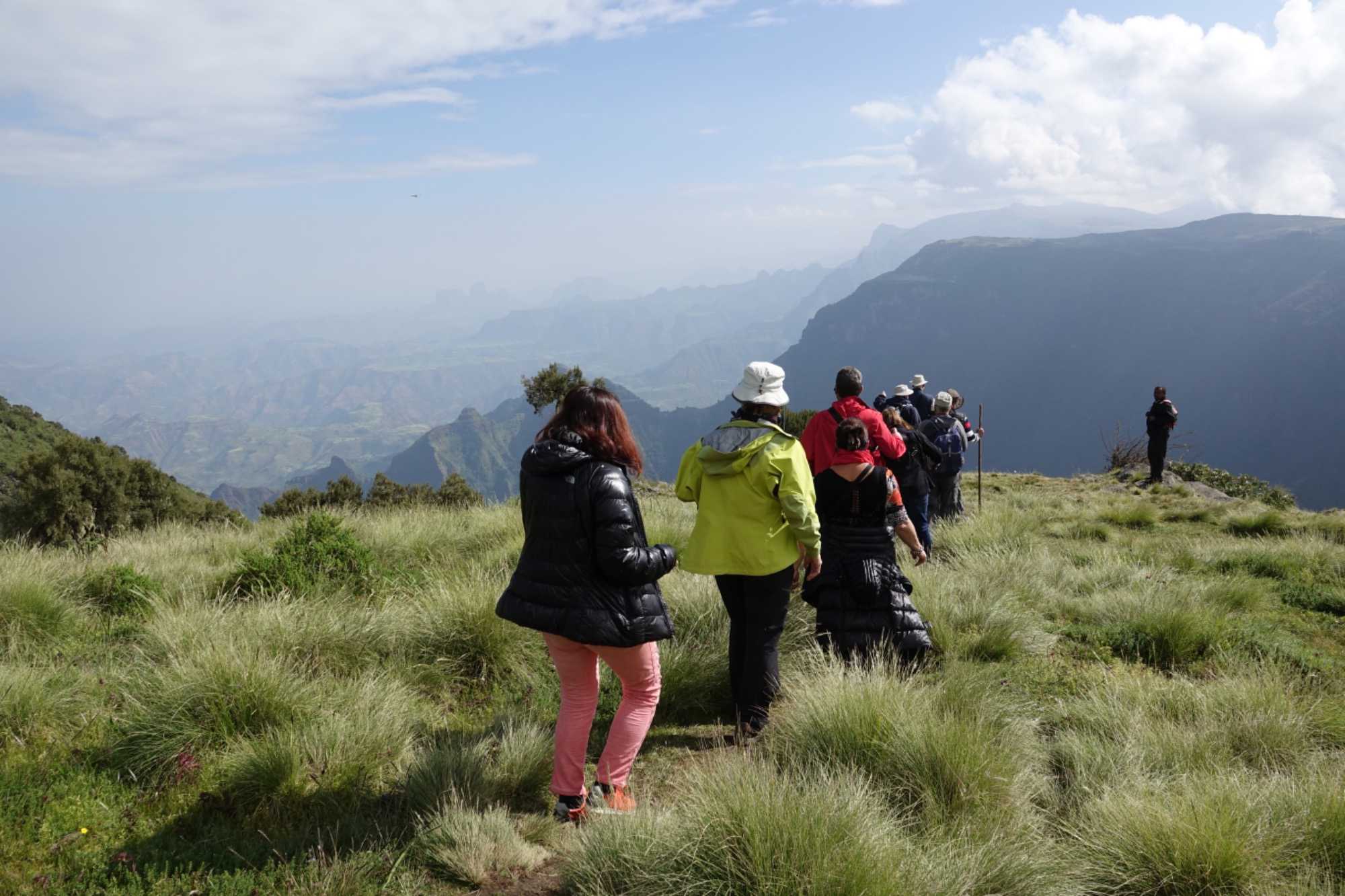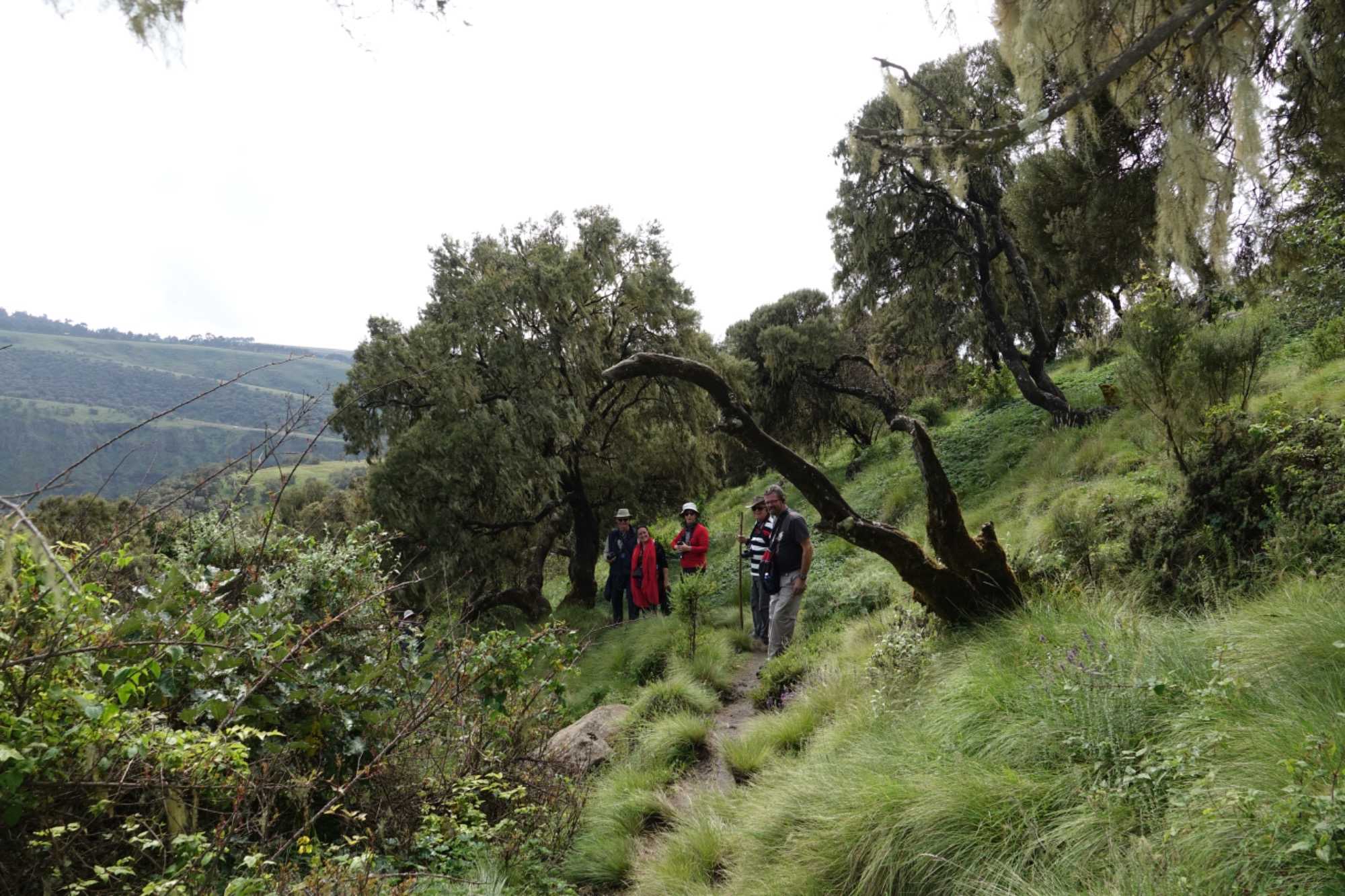 Nous prenons un bon déjeuner et puis nous partons avec notre guide et nos scouts dans le Parc National de Simien. On s’habille une peu car il fait frais ce matin mais vite, on enlève des "pelures" durant notre belle randonnée.