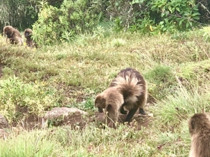 On voit plein de babouins « gelada » lors de notre randonnée. Il s’agit d’une espèce endémique et on ne peut les voir qu’ici dans ce parc. Ils sont très poilus et pas peureux, on peut s’approcher d’eux sans problème. C’est tout un spectacle de les voir jouer et s’amuser et surtout manger de l’herbe car ils sont herbivores. De les voir manger en choisissant chaque brin d’herbe, c’est tout un spectacle!