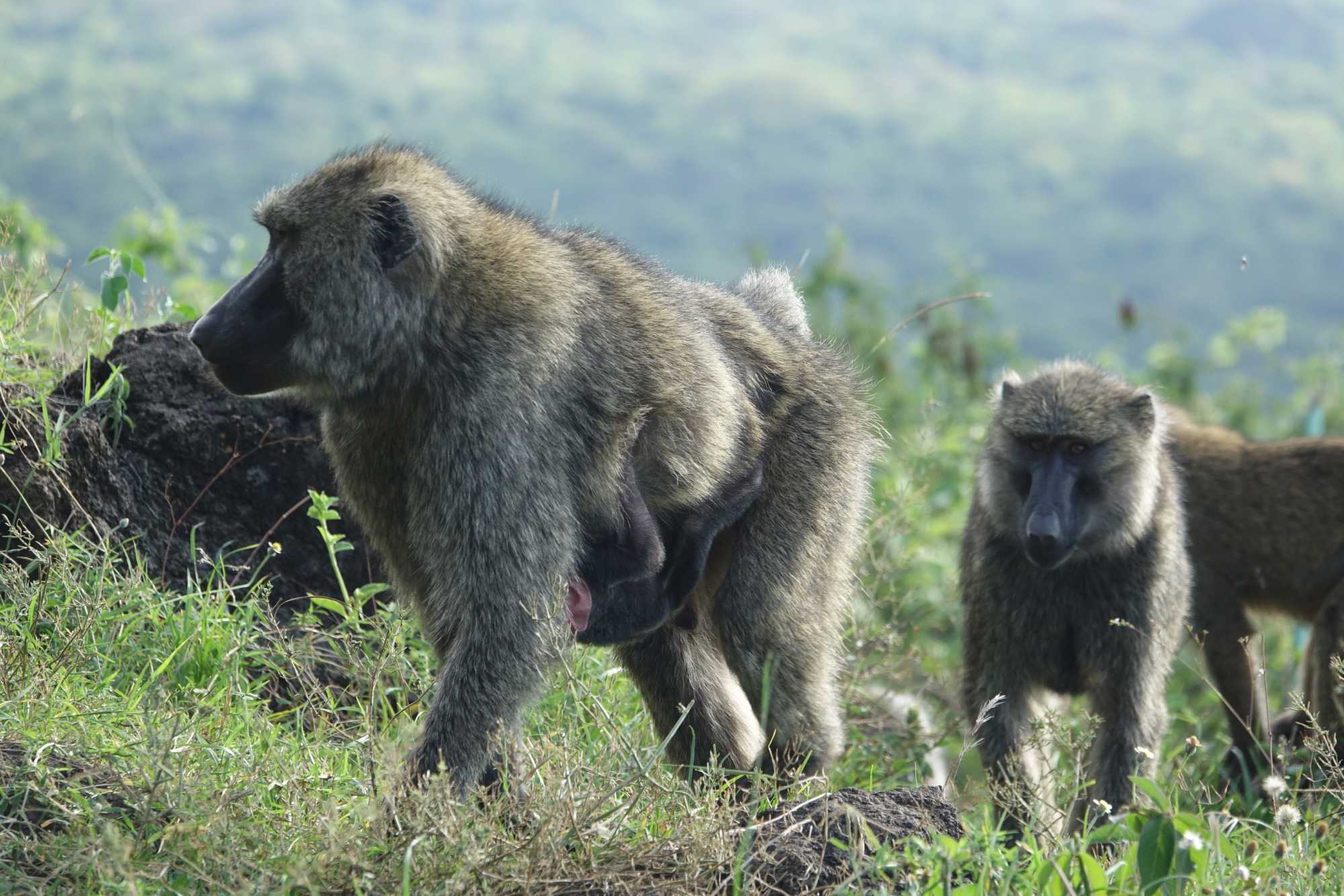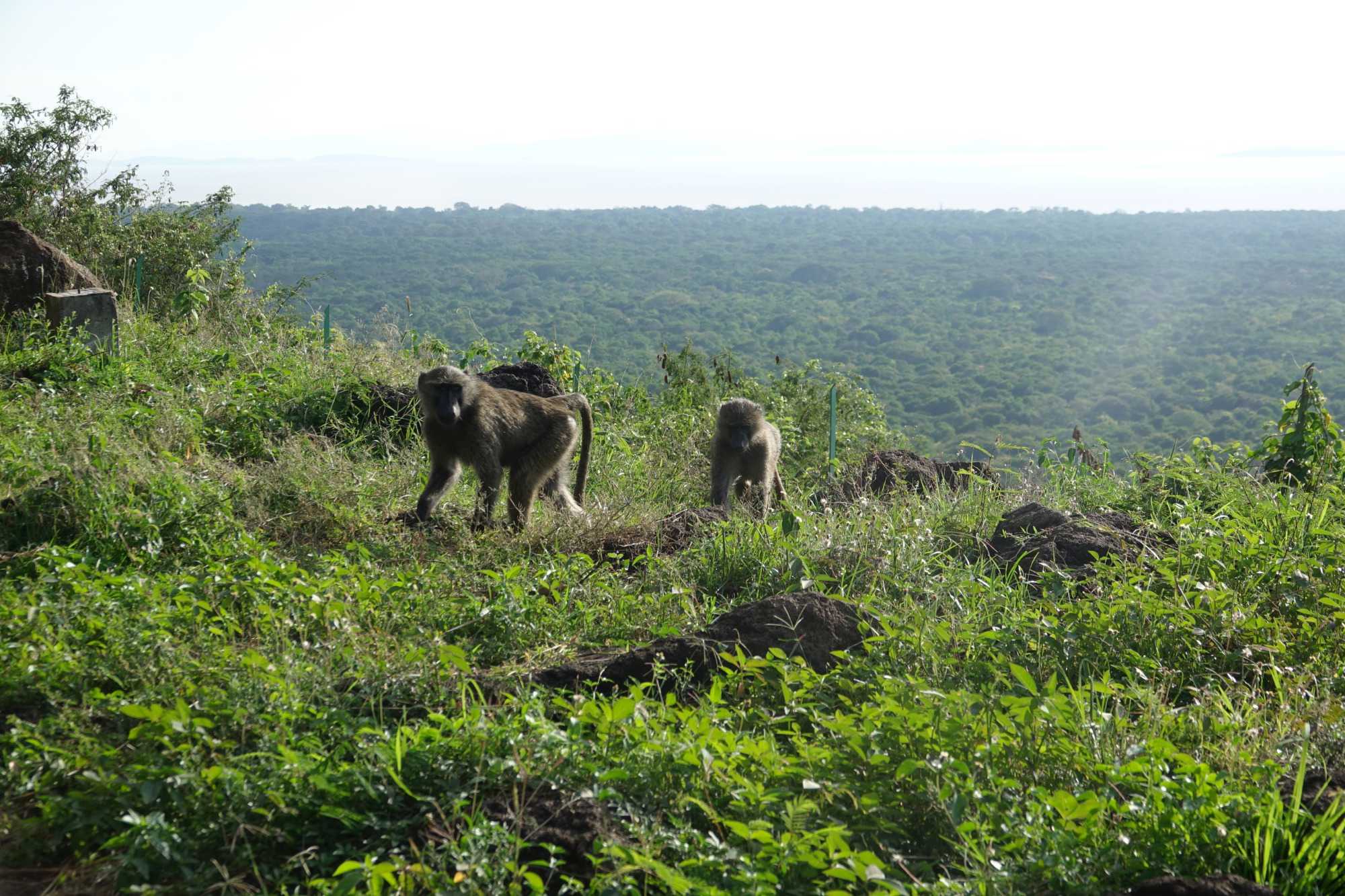 Ce matin, c’est la grasse matinée… Nous profitons d’un bon déjeuner au lodge. On prend le temps pour relaxer car notre vol est à 11 h 40 ce matin. On refait une dernière fois nos valises pour le grand retour. Encore une fois ce matin un peu plus tard nous avons eu la visite de notre groupe de babouins venu hier me saluer mais cette fois-ci c’est Sophie qui était à les surveiller. Les photos vous amuseront car André en a profité pour venir surprendre Sophie en passant par derrière notre hutte avec une couverture sur la tête. Elle a vraiment sursauté car elle était déjà nerveuse en surveillant la possible arrivée de ce groupe de babouins. Elle se tenait avec un bâton dans les mains au cas où….