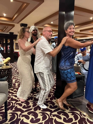 Puis nous retournons à notre navire une dernière fois pour prendre nos valises et embarquer dans le bus. Nous nous dirigeons à travers la ville d’Assouan vers notre fameux hôtel, le Sofitel Legend Old Cataract 5*. Je peux vous dire que ça été tout un WOW! quand nous sommes arrivés. C’est le plus bel hôtel où chacun de nous avons séjourné dans notre vie, et ce n’est pas peu dire. Accueil exemplaire, c’est un hôtel avec beaucoup de caractère et de charme qui nous enchante. Nos chambres sont déjà prête et on ne fait que déposer nos valises pour repartir aussitôt pour le dîner.