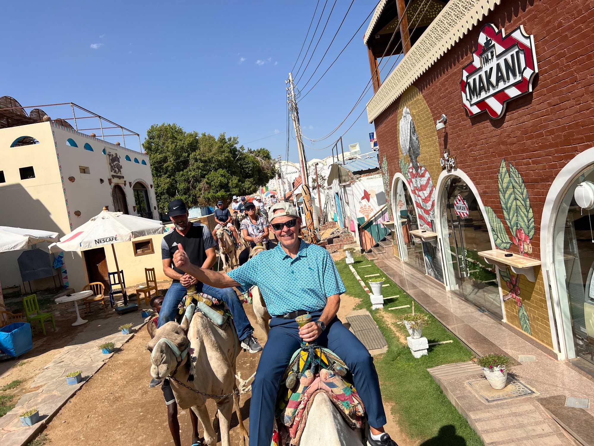 Nous étions 10 qui avons décidé de faire un tour de dromadaire, ou chameau d’Arabie, après le dîner. Nous avons eu un immense plaisir à faire cette balade. En même temps, nous en avons profiter pour voir le petit village où nous étions. Tous ont adoré leur expérience.