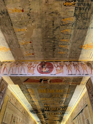 Le deuxième tombe fût celle des fils de Ramsès II, découverte en 1825. C’est la plus large tombe de la Vallée. Les couleurs sont encore une fois éclatantes. Et notre troisième tombeau choisi fut celui de Ramsès III. Vous allez peut-être penser que ce qu’on voit est pareil partout avec les différentes photos, mais je peux vous garantir que l’effet de chaque visite est unique et nous sommes tous impressionnés par chacune.