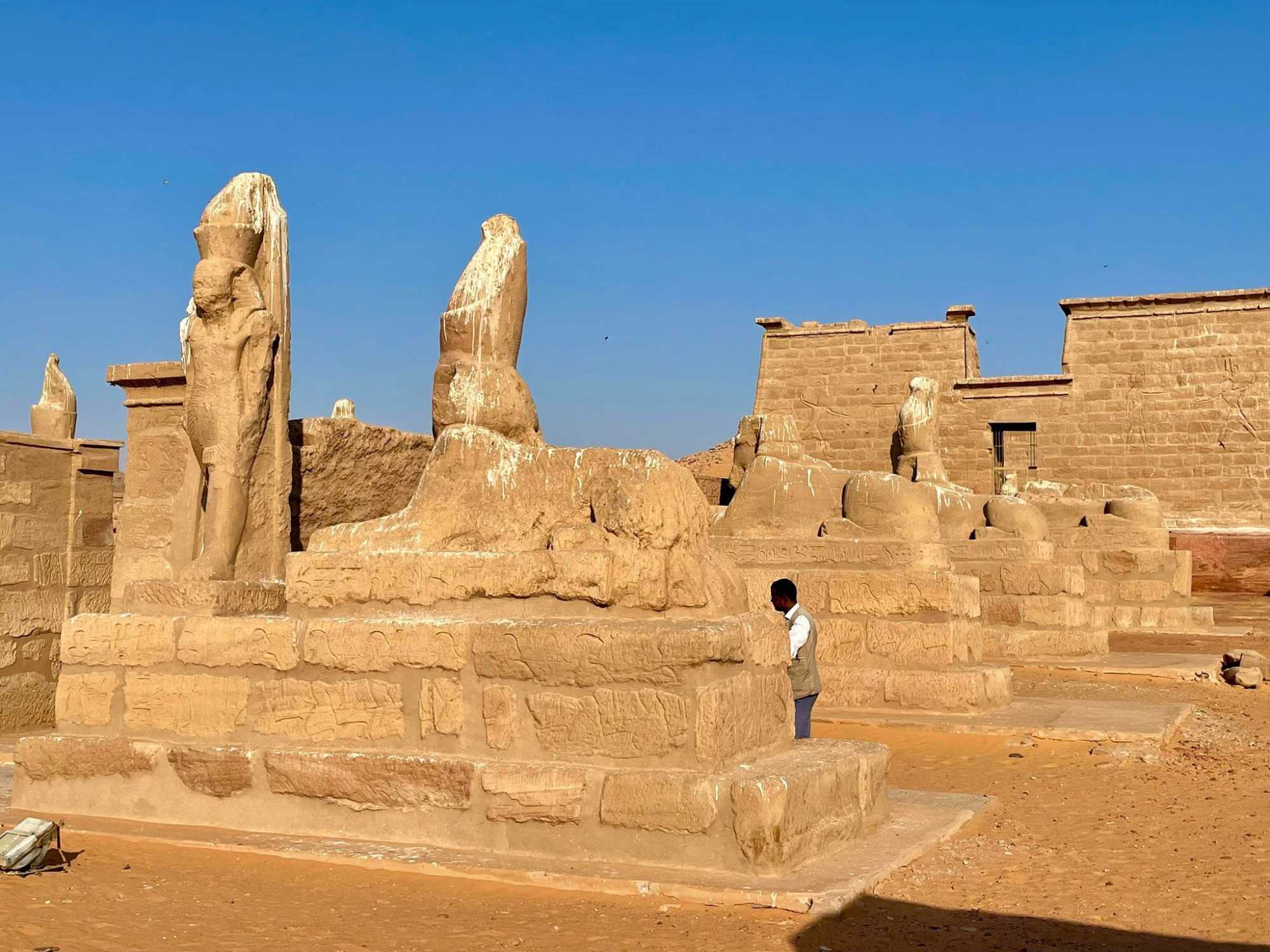 En ce dimanche ensoleillé comme toujours en Égypte. Nous sommes partis très tôt à la découverte du temple de Wadi El Sebou « la vallée des lions ». Il s’agit d’un vaste complexe constitué de deux temples et chapelles. Il tient son nom de l’allée de sphinx qui y conduisait, dédié aux dieux Amon et Rê Horakhty. Le temple est l'un des temples construits pendant l'histoire du Nouveau Royaume d'Égypte en Basse Nubie car il contient un temple pour le roi Ramsès II de la 19e dynastie. Le temple a été construit par le pharaon Amenhotep III et Ramsès II l'a restauré.